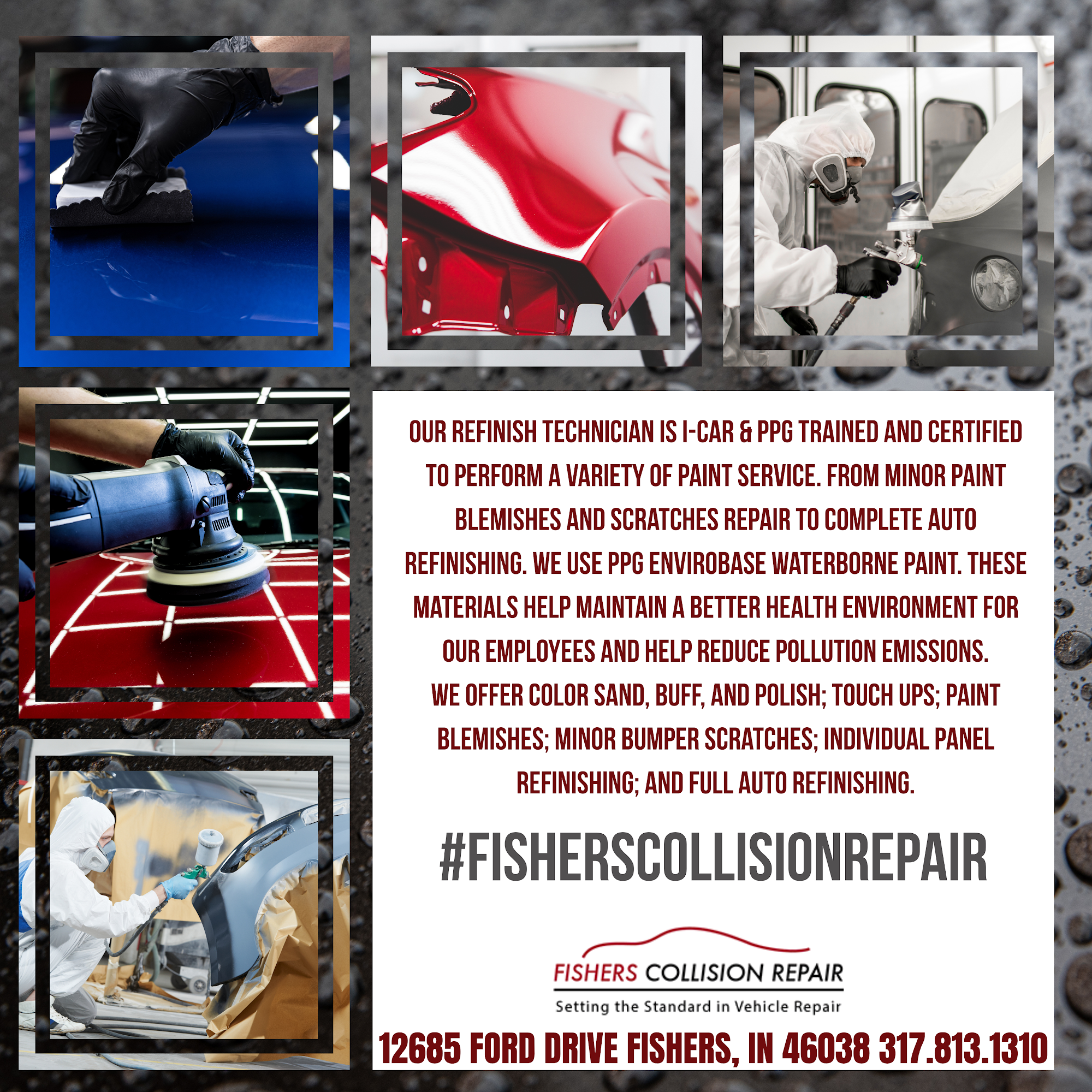 Fishers Collision Repair Shop is a reputable auto body and collision repair service located in Fishers, IN. They specialize in a range of services, including frame straightening, dent removal, paint matching, and full collision restoration for all vehicle makes and models. Customers appreciate the friendly staff and smooth process from start to finish, often noting the professionalism and helpfulness of the team. Many reviews highlight the high-quality repairs, with one customer praising the excellent paint work and detailing services. Fishers Collision works with all major insurance companies and provides free estimates, making the repair experience easier for clients. Although some delays can occur due to parts availability, the staff keeps customers well-informed throughout the process. Locally owned and operated, Fishers Collision Repair takes pride in ensuring that their clients get back on the road safely and efficiently. Overall, the shop is highly recommended by customers who have had positive experiences with their services.