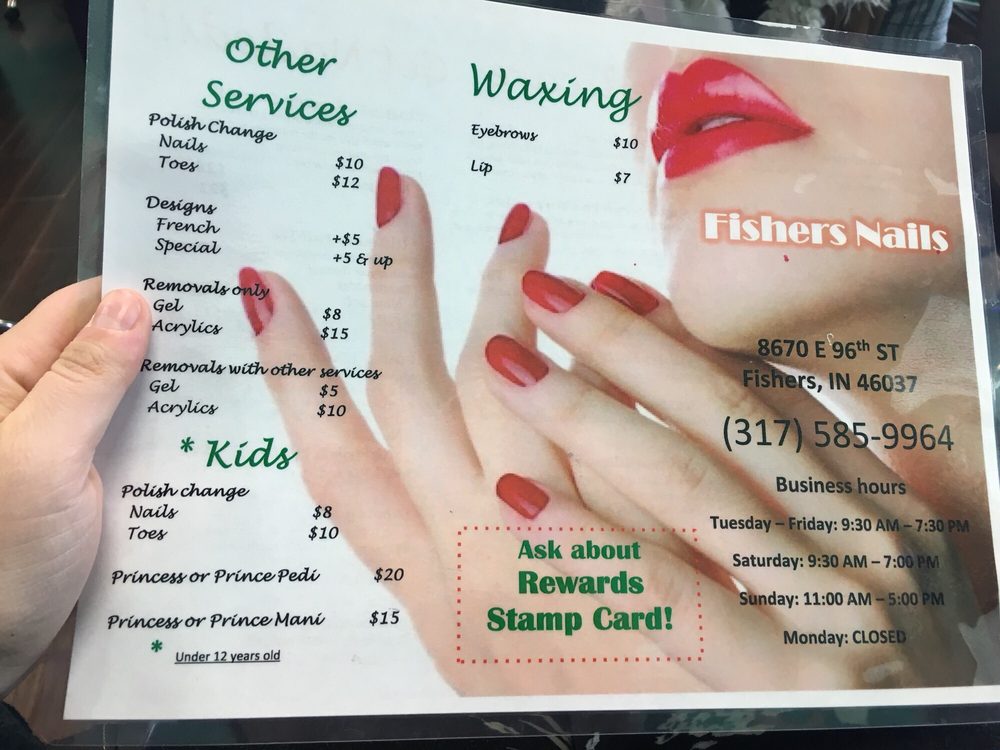 Fisher's Nails provides excellent services! Angie takes great care of my spouse and I am very pleased with Jennifer providing my pedicure! The facility is always immaculate and appointments are always on time. I highly recommend Fishers Nails!!
