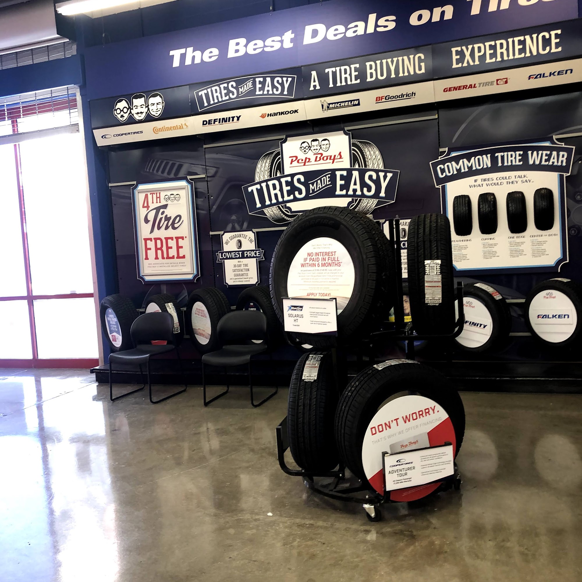Pep Boys Auto Service & Tire Shop at 8588 East 96th St in Fishers, IN, is a trusted local auto care center with over 100 years of experience. It offers a wide range of services including new tires, tire repair, and tire replacement, with same-day service to keep vehicles safely on the road. The shop specializes in auto repair and maintenance such as oil changes, brake repair, battery replacement, and inspections, and is equipped to service hybrid and electric vehicles. Customers appreciate the quick and efficient service, often receiving tire repairs or replacements in a short time, sometimes even faster than expected. The staff are known for being polite, helpful, and communicative, providing clear explanations and working within customers’ budgets. Many reviews highlight the honesty and professionalism of the team, with some customers receiving extra services like free tires or additional repairs at no extra cost. Whether it’s a punctured tire or routine maintenance, Pep Boys is praised for reliable, professional service, and its ability to accommodate tight schedules, even on Sundays. Overall, it is a dependable, friendly, and affordable auto service destination for vehicle owners.