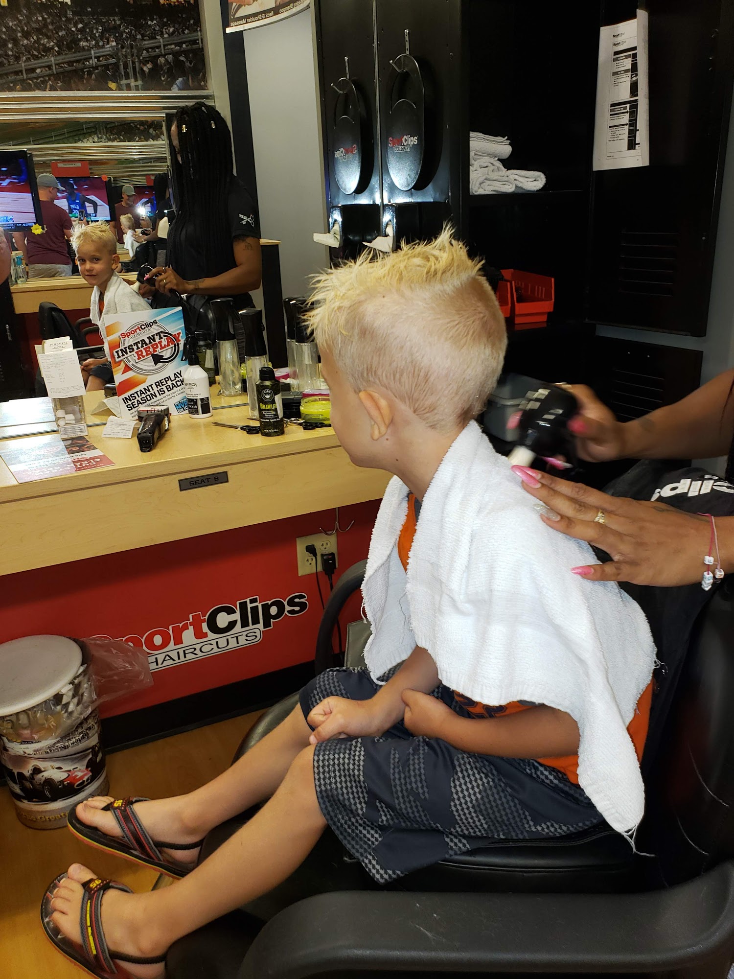 Sport Clips Haircuts of Fishers offers men and boys a unique haircutting experience. The shop features sports on TV and a signature steamed towel treatment. Skilled stylists, including the popular Misty, specialize in men's hair care and aim to provide a great haircut that makes customers feel like an MVP. Many customers praise the friendly and helpful staff. The "Ultimate MVP" treatment, which includes a seven-point shampoo and conditioner massage with eucalyptus and tea tree oil products, is a highlight for many clients. Customers appreciate that the stylists use top-notch tea tree oil products tailored to individual scalp needs, resulting in a clean, nourished scalp with a refreshing sensation. The shop utilizes an online check-in system allowing customers to choose their stylist, check wait times, and manage their appointments from various locations. While some customers note potential wait times, the quality of the haircut and the overall experience are consistently highly regarded. New clients have reported that the atmosphere and service have improved greatly, noting the quick and consistent cuts, as well as the friendly interactions. Overall, Sport Clips Haircuts of Fishers remains a top choice for those seeking a great haircut in a welcoming environment.