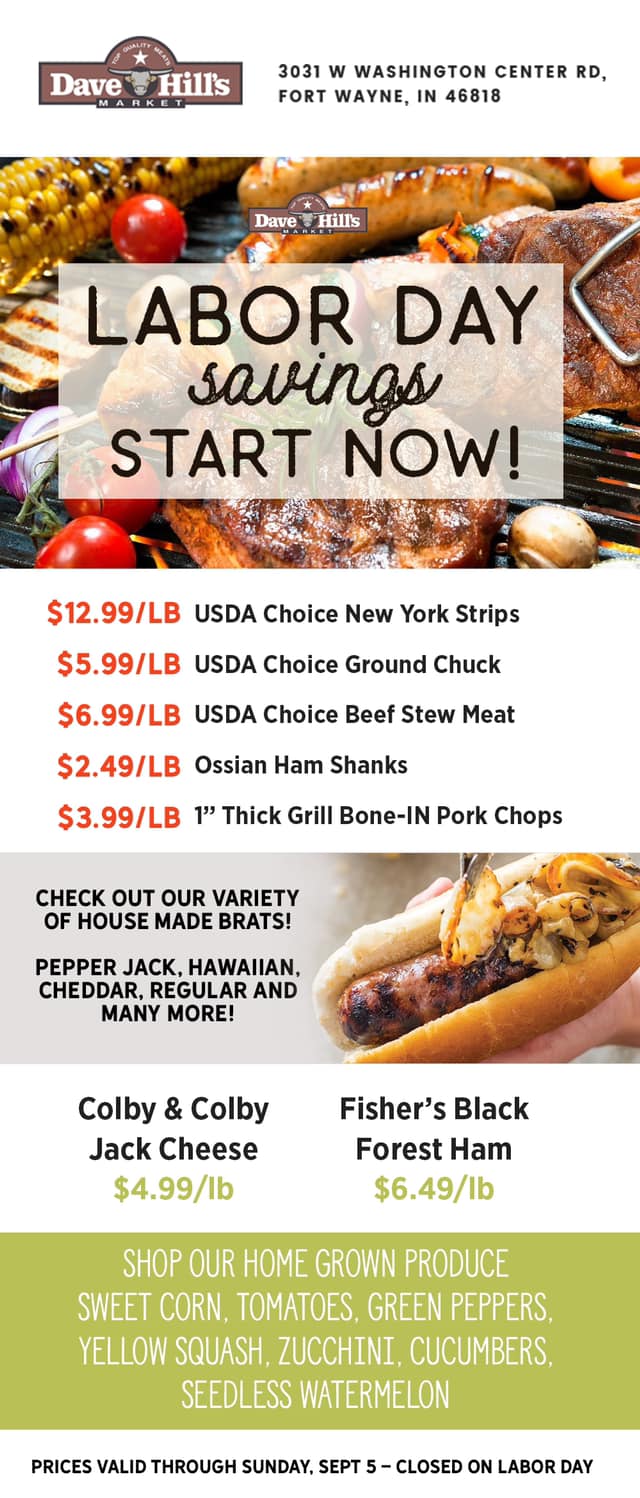Dave Hill's Meat Market is a family owned and operated Market in Fort Wayne, Indiana since 1996. We strive to provide the finest quality beef, pork and poultry, along with a variety of unique products to complement your meal. We have the juiciest, healthiest cuts of beef in the butcher case, all from Simply Essentials. We also have a large selection of wine, desserts, Amish goods and fresh produce. Come in and find out what makes our selection different and delicious!