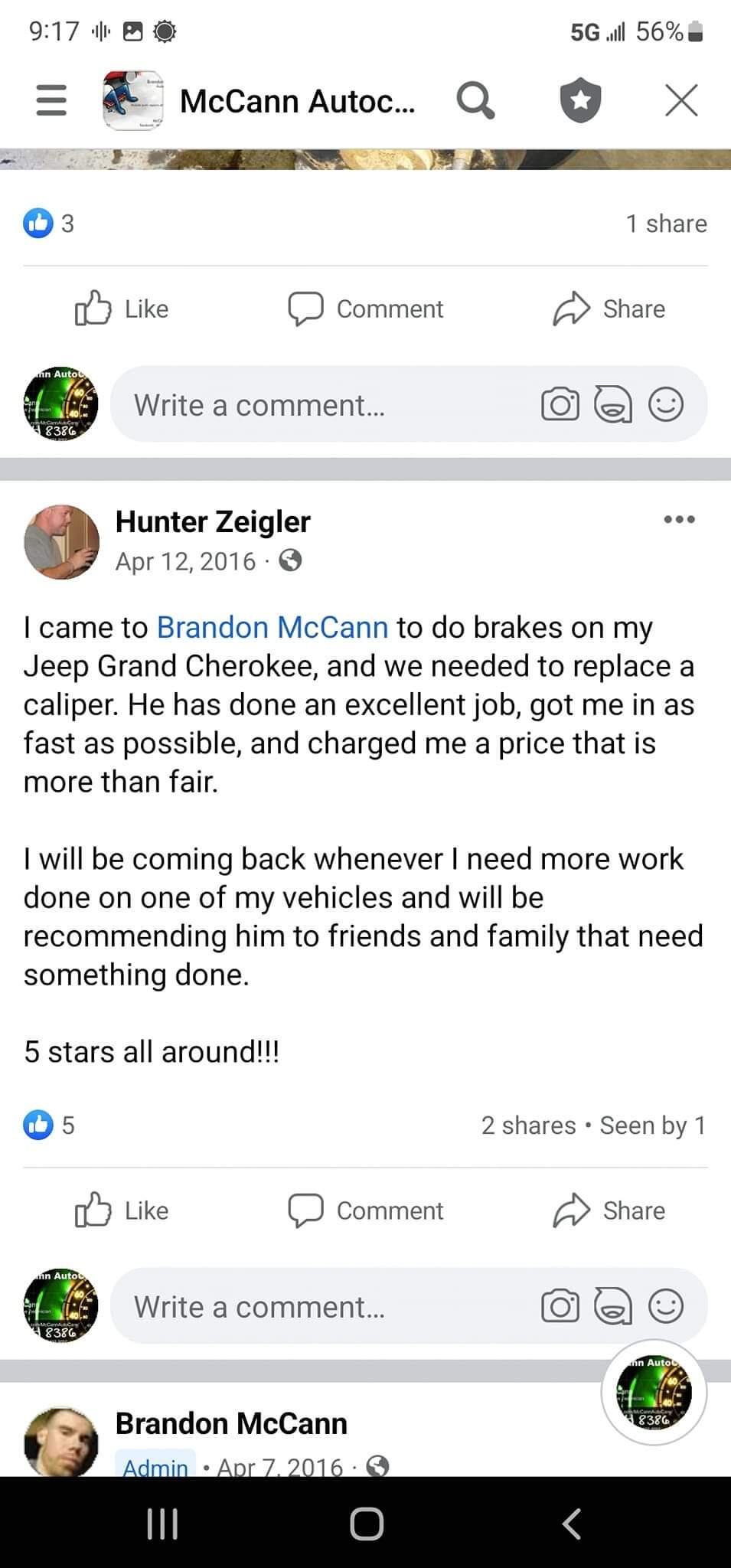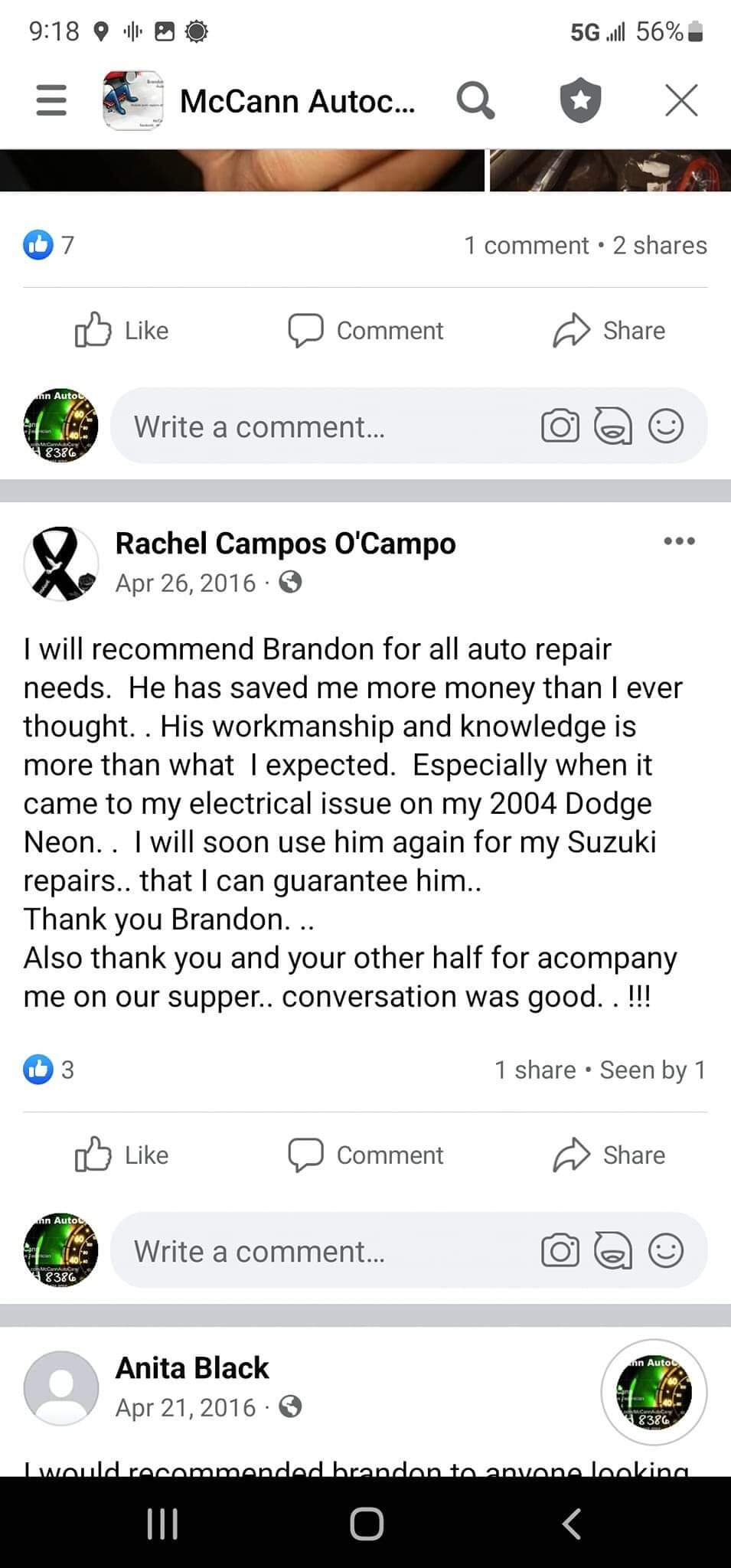Great service car was fished ahead of scheduled and if you want to talk about a fair price McCann Auto is the place to go.