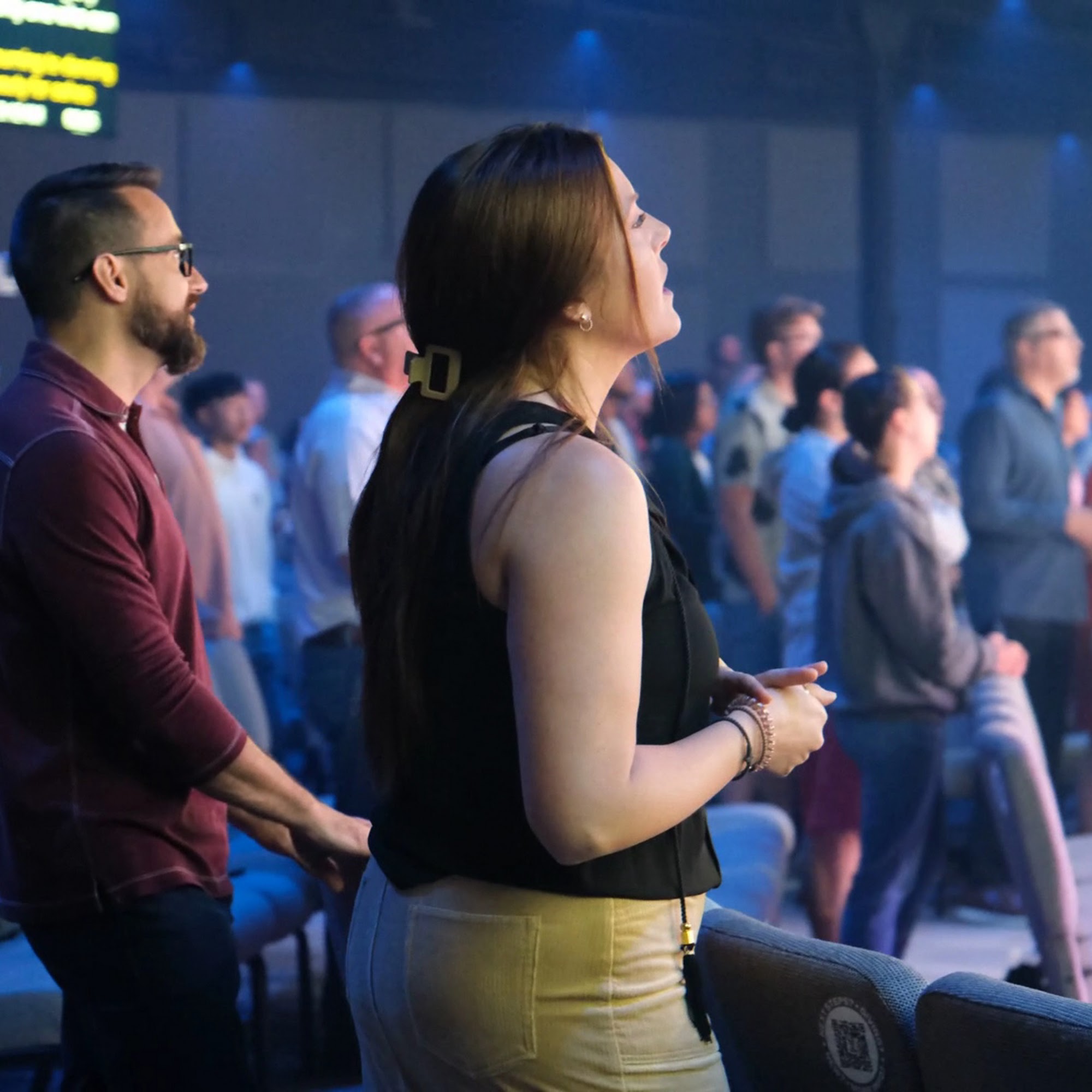 Worship and message were great. However, the flashing lights and lighting effects and rotating images on the wall and ceiling. were hard on my eyes. Plus it's hard on the eyes to have a totally dark room.And a bright screen in the front.
