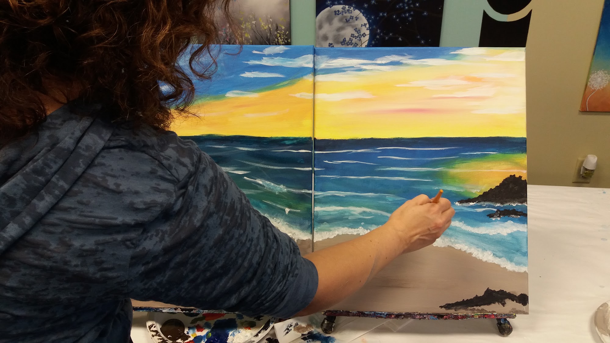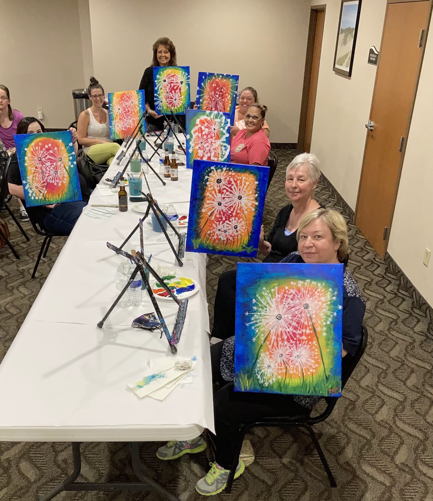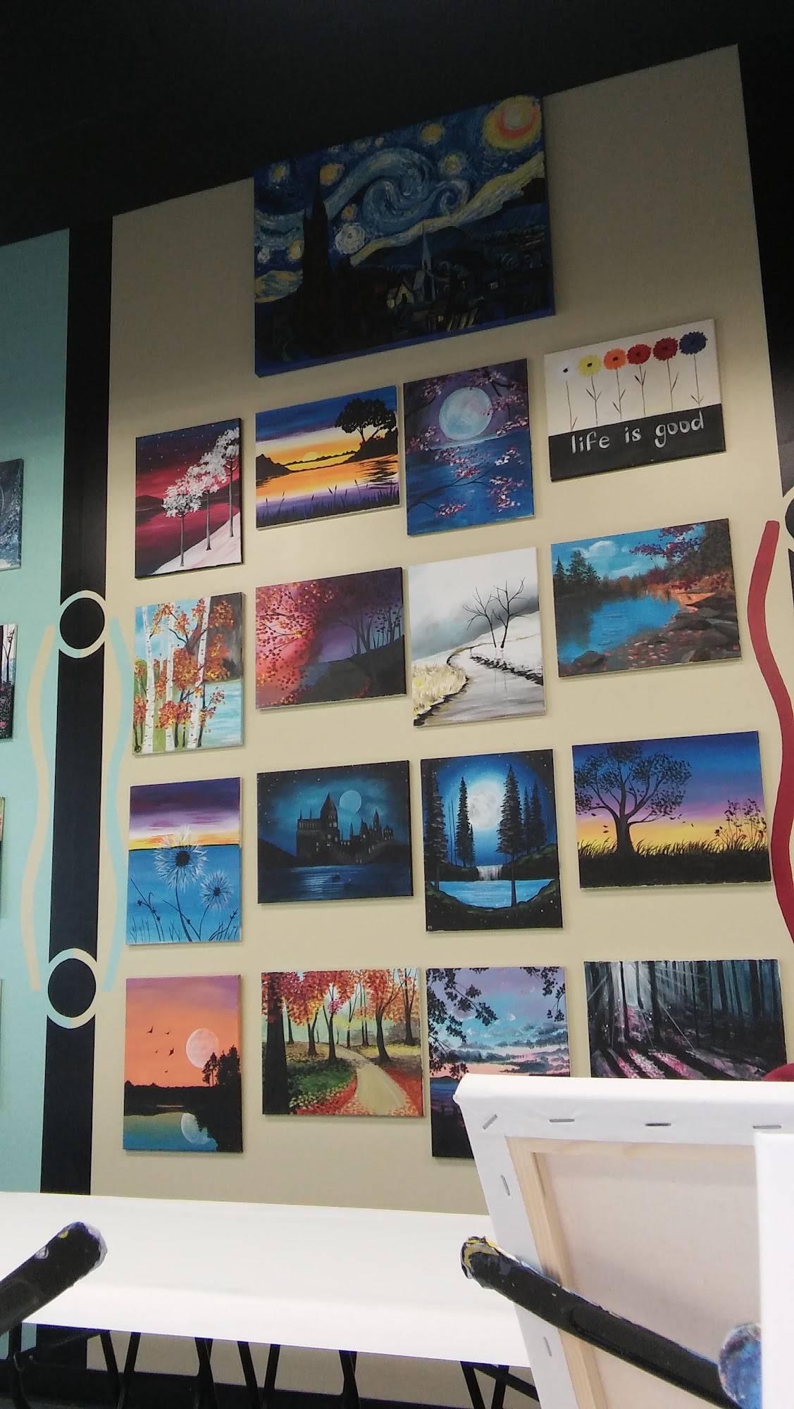 Premier painting class with cocktails! We hire local artists to provide fun, step by step instructions to help you create your own masterpiece, while you are making memories with your friends and family. We offer private events for any occasion. Our team building corporate events are always a hit! We offer Cookies and Canvas events for our “Tiny Picasso’s”. Ask us about our summer camp program! If you are looking for a chill place to get crafty and enjoy time out with your family and friends, this is the place for you!