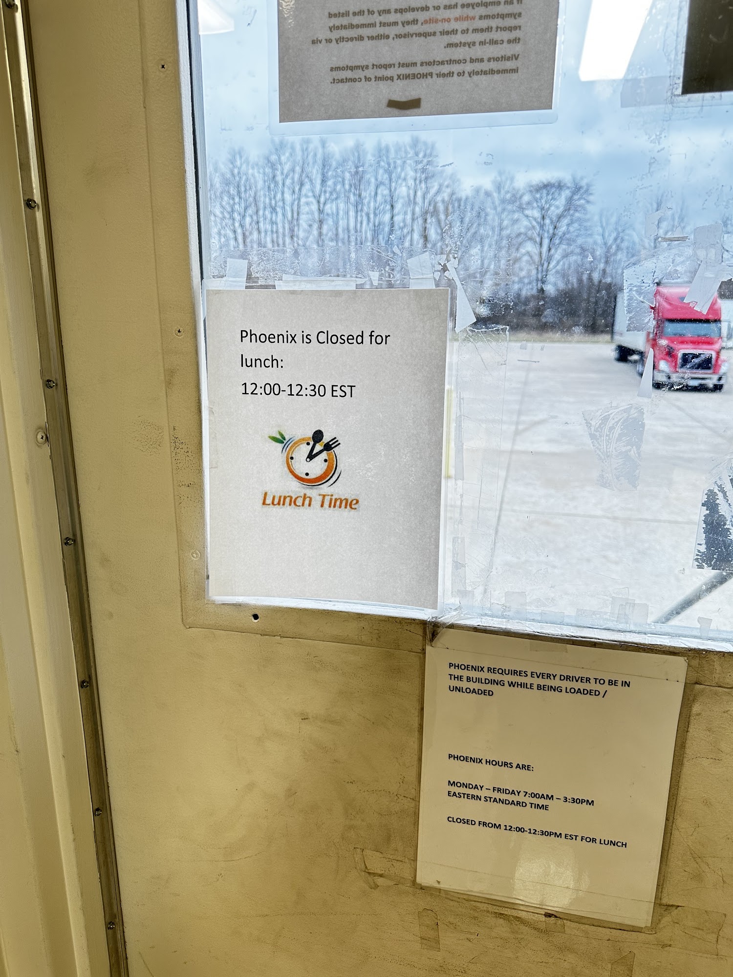 You Have to Shut off your Truck and wait inside the waiting room until your trailer is loaded.Free coffee and washroom available for the driver.