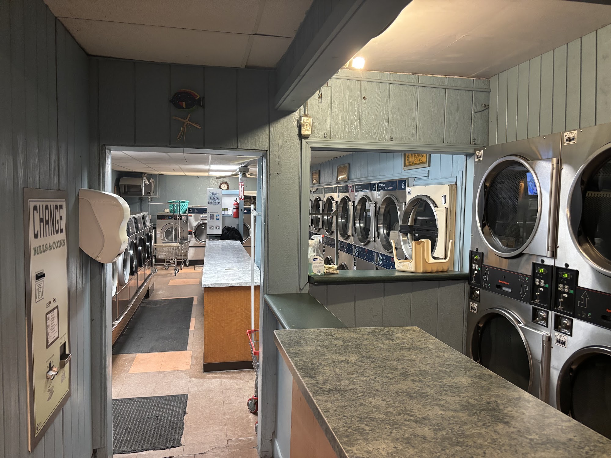 I love that this is 24 hours! It was quiet and clean. Though this place is very small and you might get a slight whiff of wet dog near the doggy section. There is only 1 vending machine that has both drinks and snacks, but not a huge selection. There is a small parking lot, as well as street parking.
