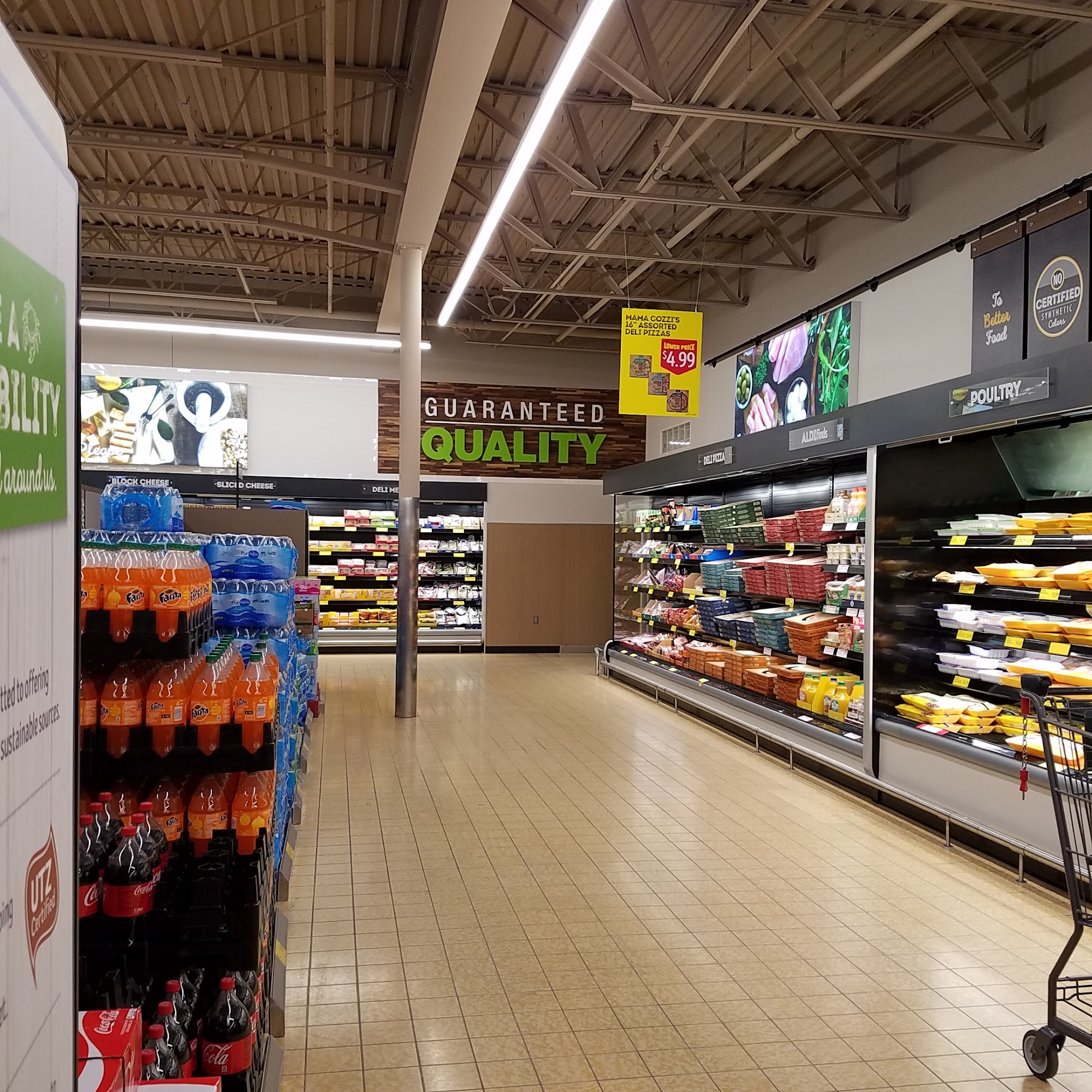 ALDI is a popular grocery store located at 4415 Calumet Avenue in Hammond, known for its everyday low prices on quality groceries and home goods. Customers appreciate the wide selection of fresh meat and seafood, produce, baked goods, and frozen treats, all offered at affordable prices. The store is clean and well-stocked, making it a convenient choice for shoppers. Many customers enjoy the promotional aisle, especially during the holidays, where they can find unique and fun items. However, some shoppers have noted long checkout lines, particularly when only one cashier is available. While ALDI maintains competitive prices on essentials like eggs and milk, there are concerns about rising prices and the need for better customer service, including the potential for security measures to prevent theft. Despite these challenges, ALDI continues to be a reliable option for grocery shopping, with a focus on simplicity, efficiency, and sustainability. The store's commitment to offering high-quality private-label products and a user-friendly shopping experience enhances its appeal to consumers looking for both value and choice.