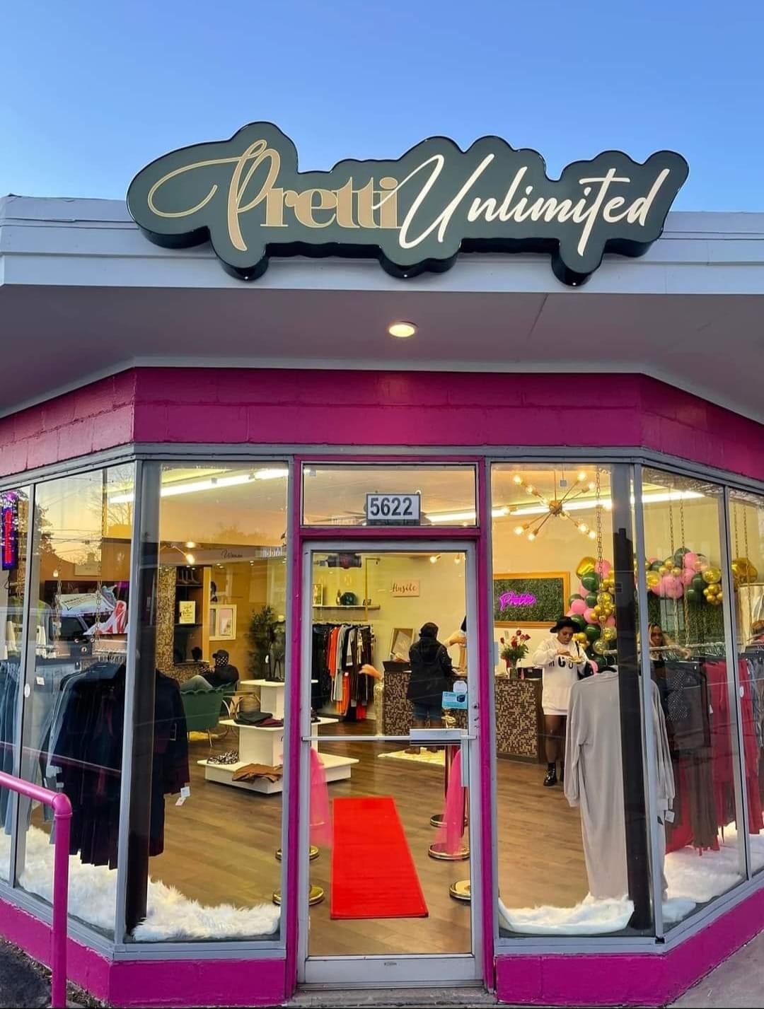 Pretti Unlimited is a beautiful and lovely boutique, described as the best in the world. The store is clean, pretty, and looks beautiful inside and out. The owner is extremely welcoming, kind, and friendly with a great vibe and awesome personality. She is vibrant, knowledgeable, and genuine, taking pride in her work. The garments are of great quality, cute, updated to today's fashion, and affordable, with a variety of styles for everyone. The owner also provides the BEST and bomb lashes. Customers highlight great customer service and recommend it as a must-visit spot for a great shopping experience, promising you will not be disappointed.