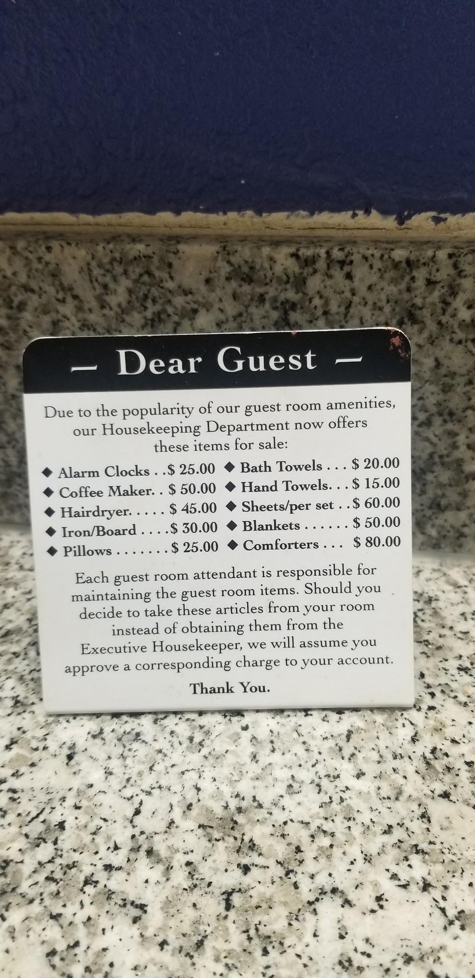 The rooms were nice but the bed is super hard and very uncomfortable. Customer service was extremely great the entire stay.