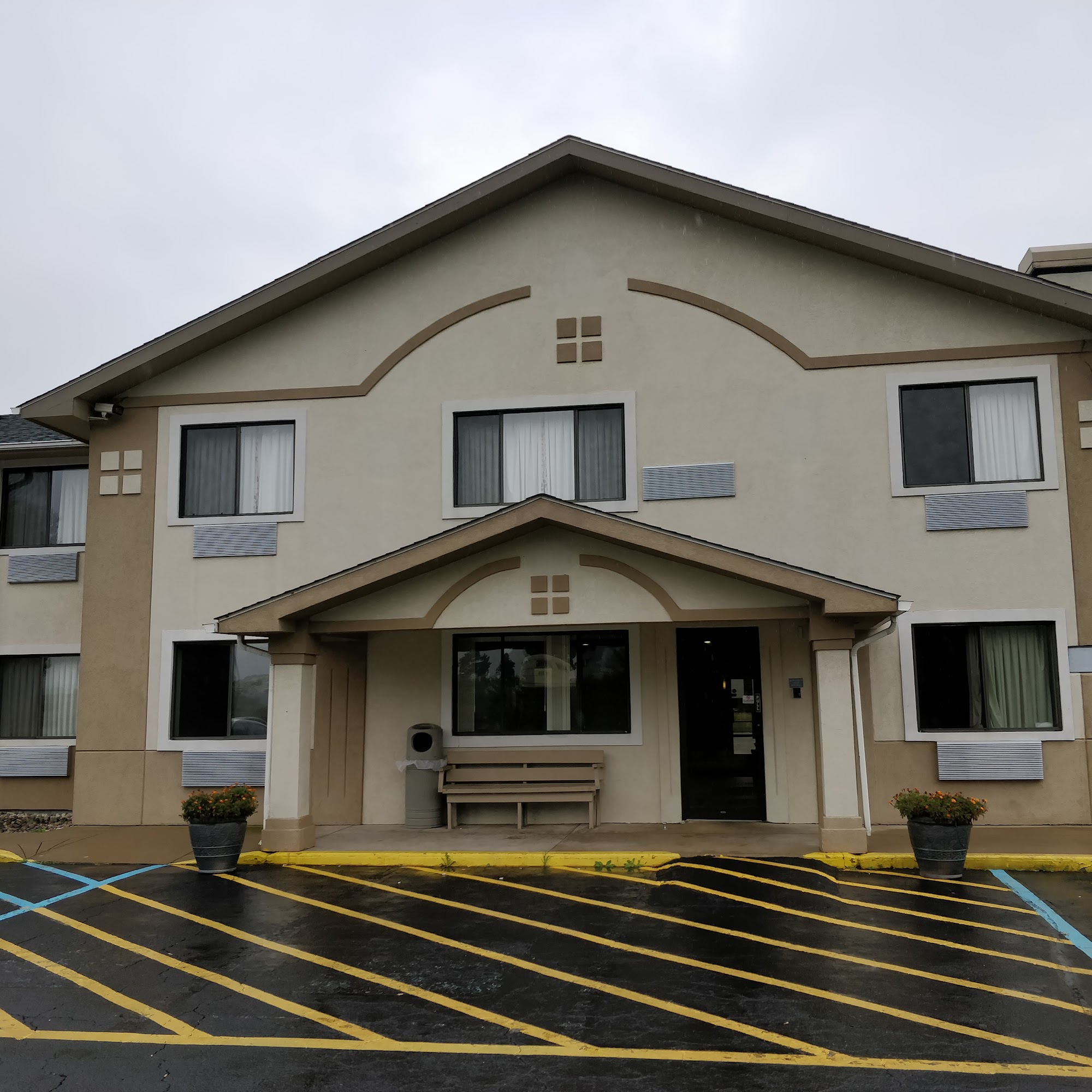 Super 8 by Wyndham Howe is an older building with some newer furnishings, though renovation work appears to be subpar, with sloppy painting and chipped doors. The hotel is located in a somewhat isolated area with limited walking options. While the staff generally seemed lackluster, they were helpful once engaged in conversation. Guests noted that the room was clean, quiet, and comfortable, with a new, cozy bed. Breakfast options are typical for a lower-end hotel, offering hot breakfast and coffee to go. The property has no elevator but offers plenty of parking and a peaceful environment. Some rooms experienced issues, such as malfunctioning AC and shower controls, but staff were helpful in resolving problems. Overall, guests found the rooms to be clean and reasonably spacious, and many would stay again despite minor inconveniences like temperature control and location. The hotel is in the process of rebranding from Quality Inn to Super 8.