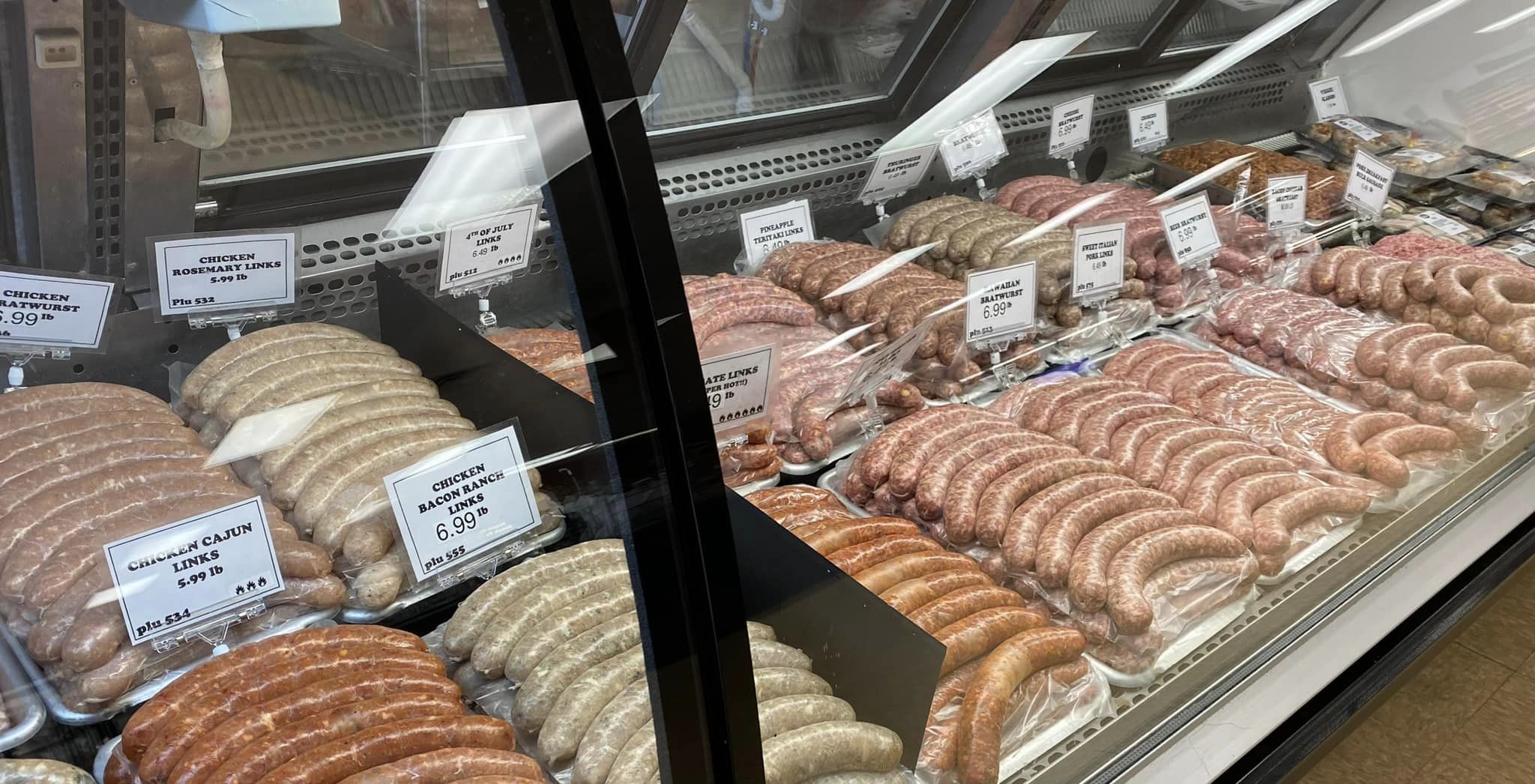 They were out of a lot of fresh meats. A shipment was coming in later in the day. FABULOUS selection of fish...bluegill, perch, walleye. They also had a wide selection of flavored brats.