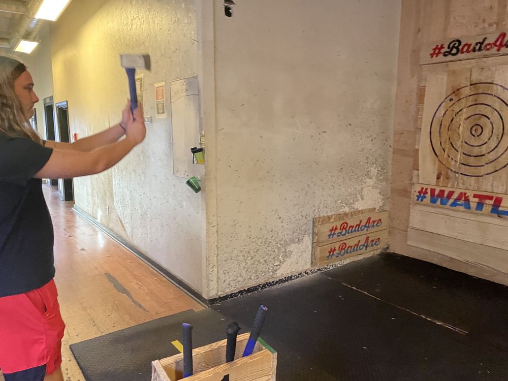 Bad Axe Throwing Indianapolis offers a fun and exciting experience for individuals, friends, couples, and teams. The venue features the world's largest urban axe throwing club, providing a great setting for learning proper throwing techniques and enjoying a unique activity. The staff, especially coaches like Kyle and DeJon, are friendly, helpful, and make the experience enjoyable by teaching different throws, sharing fun games, and offering personalized attention. Visitors appreciate the welcoming atmosphere and the opportunity to customize their experience, such as playing their favorite music when alone. Whether for a team-building event, a date, or a fun night out, guests leave with memorable moments, adrenaline rushes, and a desire to return. The staff's genuine approach and helpful tips contribute to a positive experience, making Bad Axe Throwing Indianapolis a top choice for axe throwing in the area.