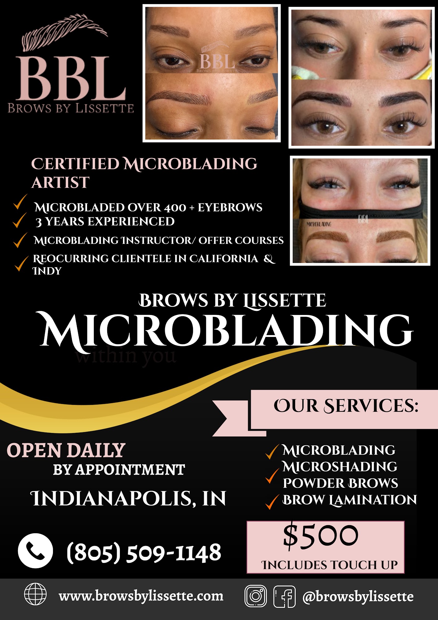 Brows by Lissette is a professional microblading studio providing world-class permanent eyebrows and beauty services. The artist is praised for her amazing personality, magical talent, and being the best. Clients describe a great experience in a neat, clean, and private environment. She is very professional, easy to work with, and informative, offering outstanding customer service. Her precision is spot on, delivering excellent results that clients love and highly recommend. Many note they will return for touch-ups and call her the Powder Brow Whisperer. Training courses for PMU services are also provided.