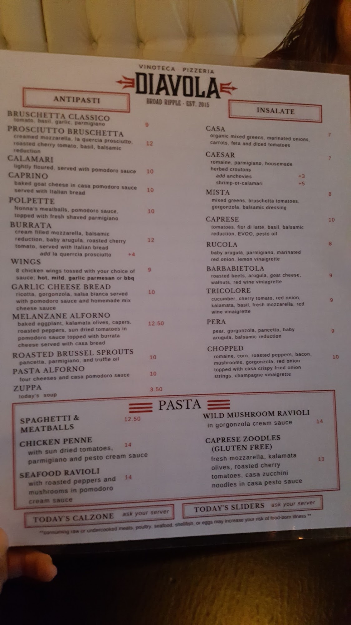 Dinner was great. Pizza was amazing. Mushroom risotto was a bit too al dente for me. It was grainy and the mushrooms were not cooked properly I'd go back for the pizza anytime.