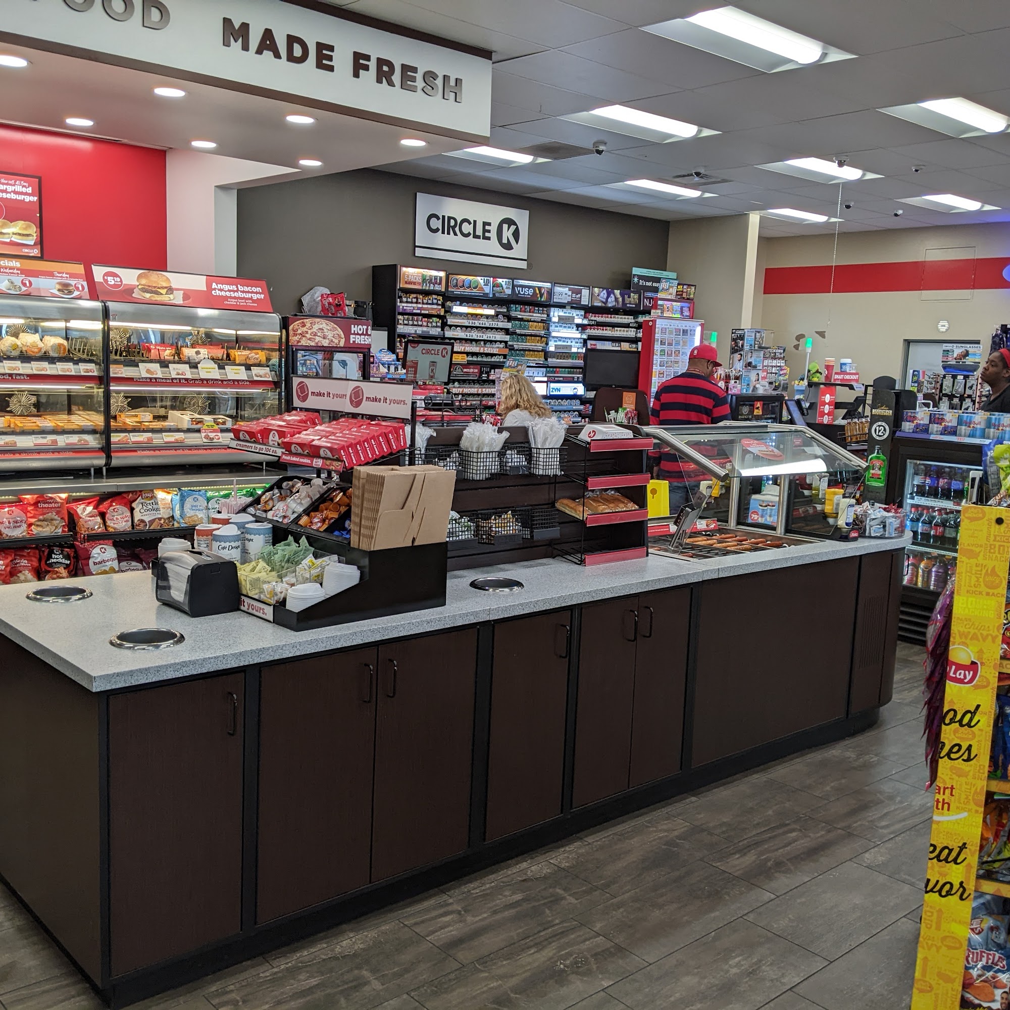 Was working extremely late. Walked in and only one cashier and Circle k pop look bad so filled cups and cleaned area. Nice person. Great store.