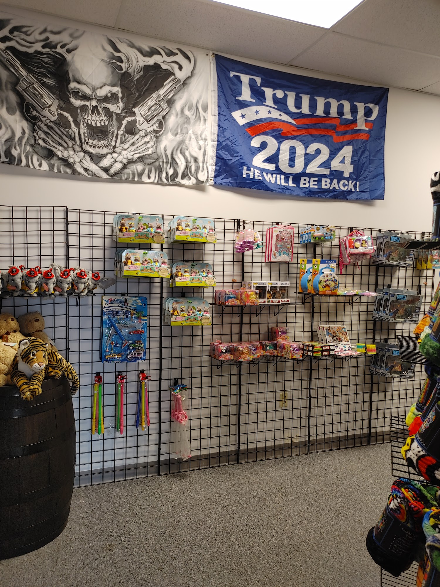 We will be carrying affliction, Levi's, wornstar, Miss Me, warrior 12, . Its taking a minute to get all the brands in stock. We also have skulls figurines, flags and fairy's, socks, colgene, perfume, beard products, tobacco pipes and a little this and that. We continue to bring in different things all the time.