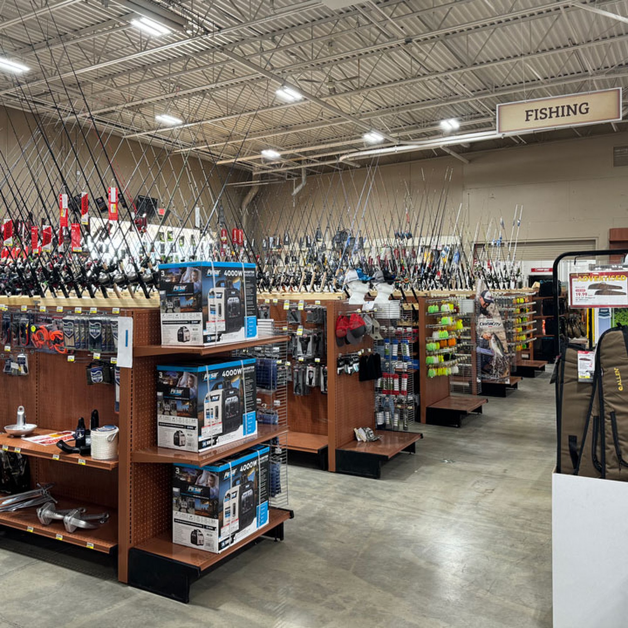 Runnings is a home, farm, and outdoor store with a large selection of lots of stuff. It provides a good selection of quality merchandise, including name-brand clothing, tools, pet and auto supplies, sporting goods, farm equipment, and a nice firearm selection. Prices are good and competitive, with attractively priced items like automotive batteries. The employees are super helpful, down to earth, and provide hometown-friendly customer service, assisting in finding what you need. The shelves are full, and it is a place where you want to take your time and look around. Leashed pets are welcome in the store.
