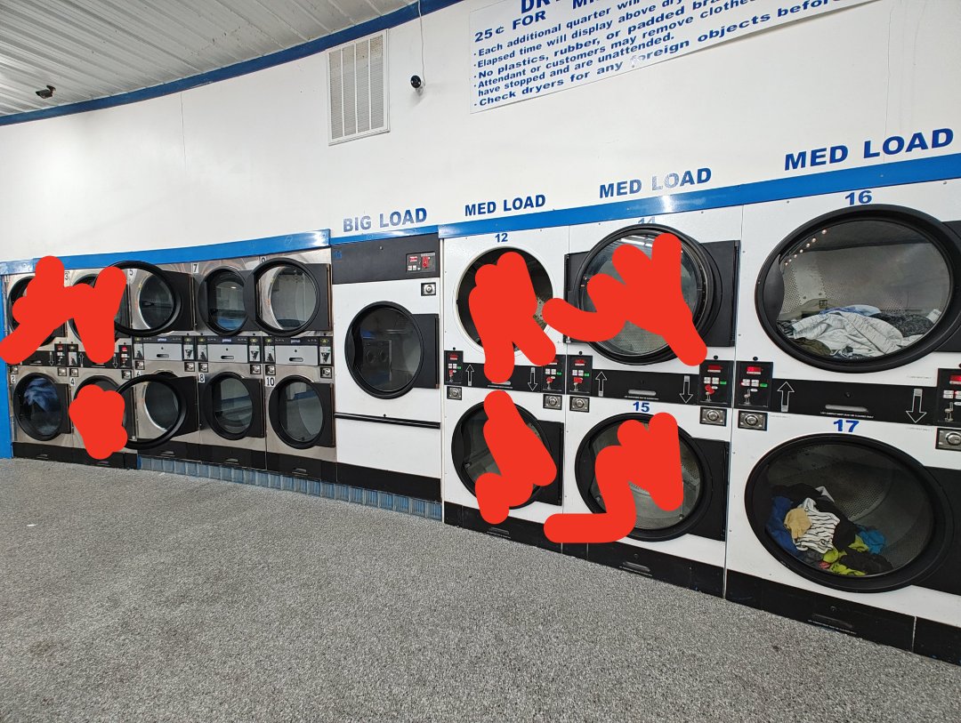 Almost all thr big washers are broken and there's never toilet paper in the bathroom and it's not clean