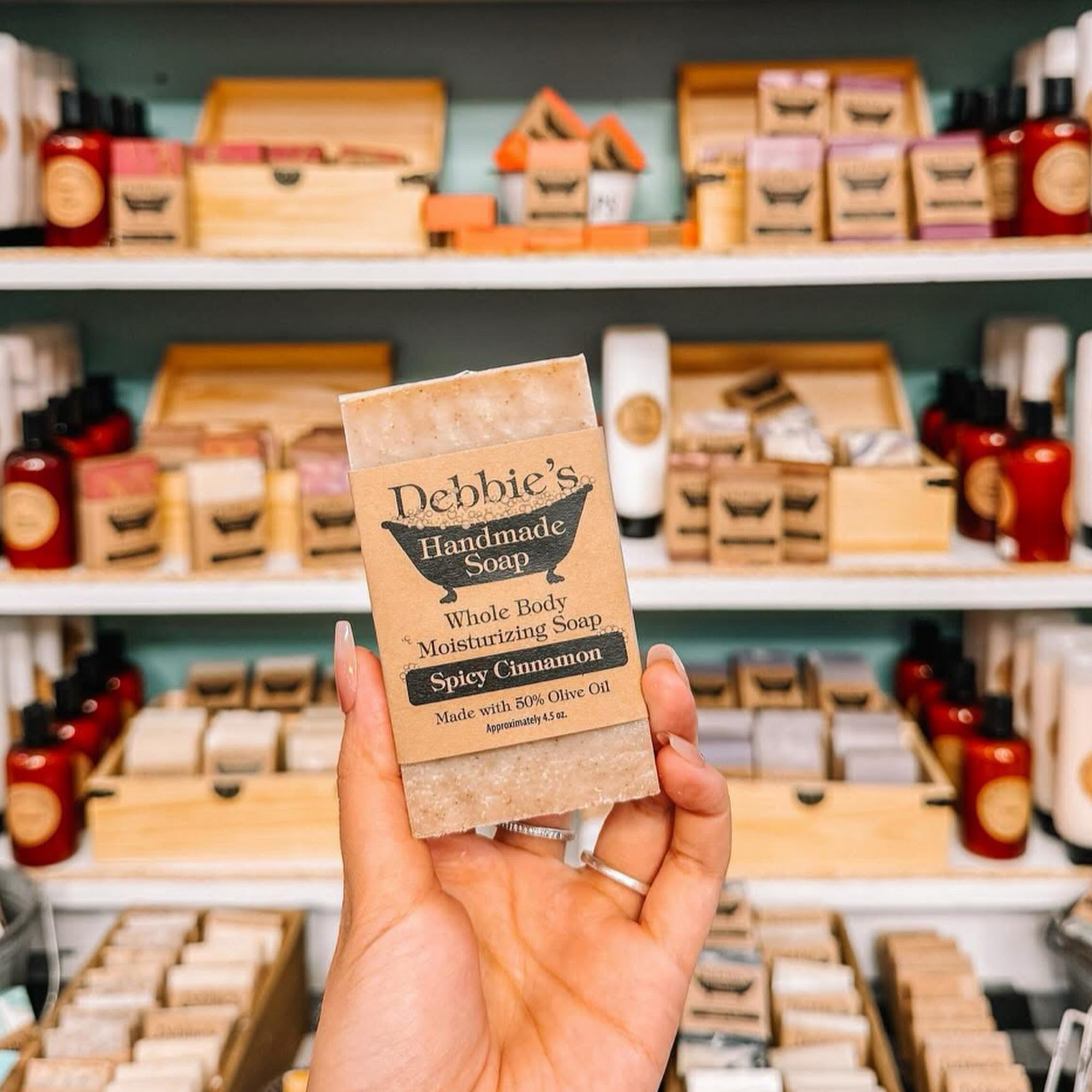 Debbie's Handmade Soap is a woman-owned business that has been creating high-quality soaps since 1999. Debbie began making soap to help her daughter with eczema, and her passion for crafting effective products quickly turned a hobby into a thriving business. Debbie's soaps are known for their natural ingredients, making them ideal for dry skin, eczema, and sensitive skin types. Customers praise the variety of scents, with favorites like coffee and cherry almond standing out. The soaps have a pleasant aroma that is not overpowering, ensuring a delightful experience. In addition to soaps, the business offers car fresheners, wax melts, and low-waste hand soap refills, all of which have received positive feedback. Many loyal customers appreciate the personal care they receive and are impressed with how long the scents and products last. The prices are reasonable for artisan quality, making Debbie's a popular choice among consumers. Online orders are common, especially for those who live further away, but many customers express a desire to visit the storefront in the future. Overall, Debbie's Handmade Soap is highly recommended for anyone seeking effective, natural skincare products made with love.