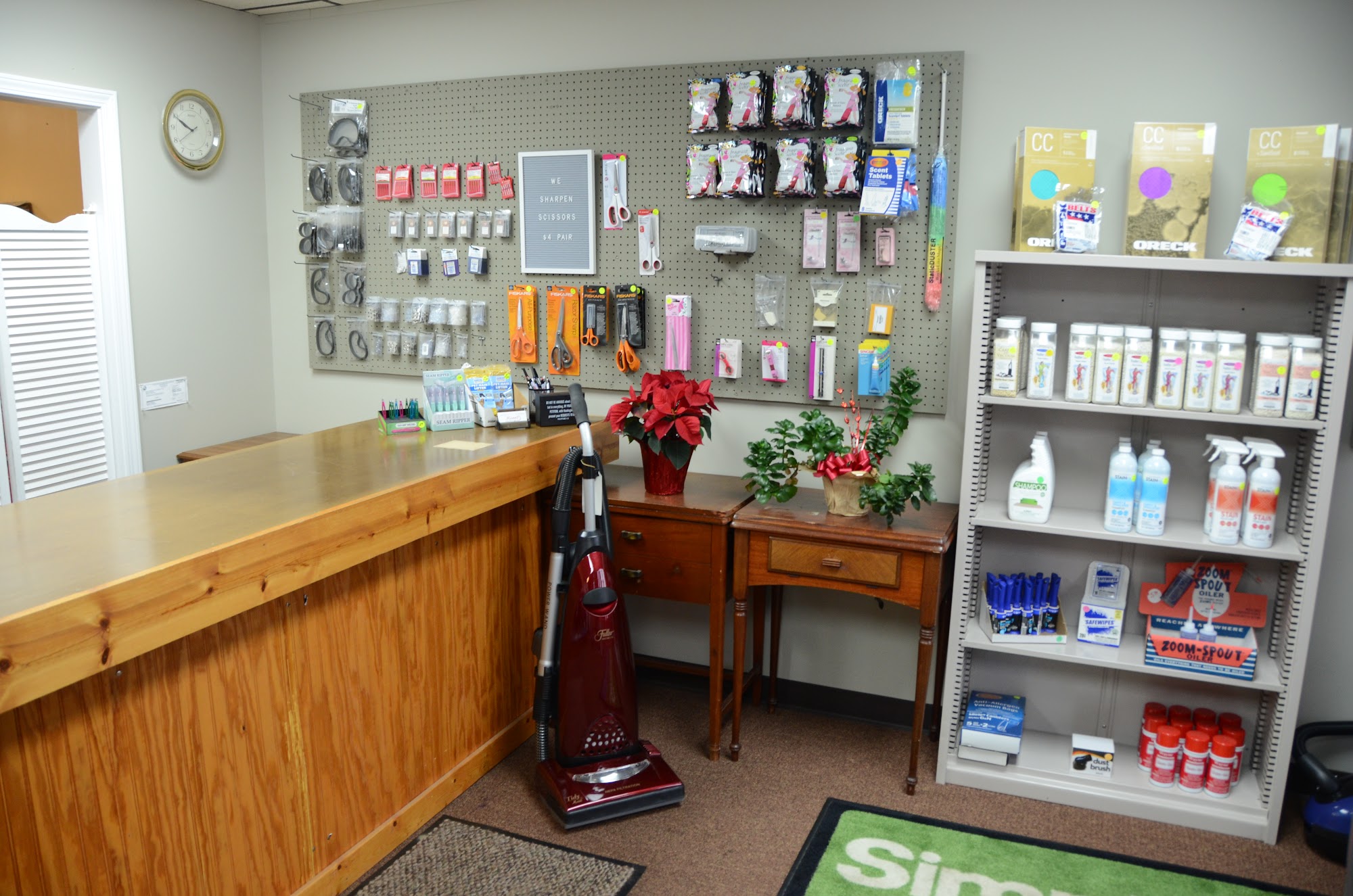 Expert sewing machine care. Very helpful and can sharpen scissors too.