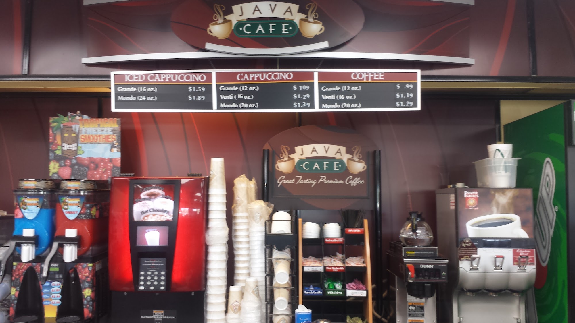 Pretty good gas station with decent prices compared to others. Clean drink station and good price on cigarettes.