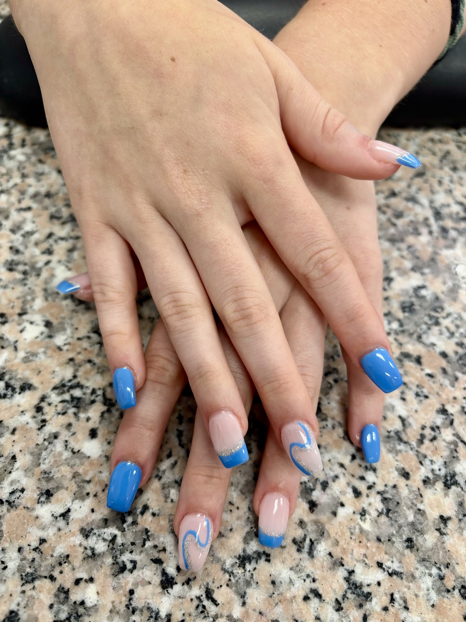 I will not go to another nail salon! Duke is the man and is magic! It’s always quality work and people when you come in! The multicolored set is the one i just got and the orange and blue is the last set! Definitely go see my man Duke!!!!