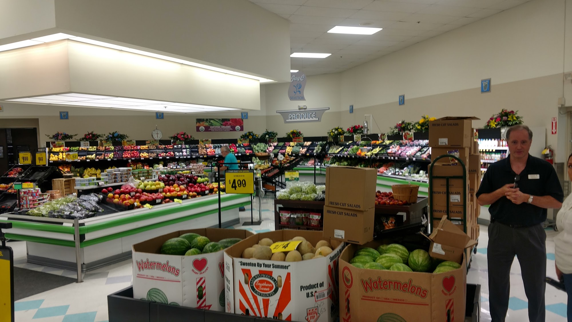 Jay C is a grocery store offering quality food, household products, and great deals. The store is clean with a very friendly and helpful staff. It is a one-stop shop with fresh produce, meats, and pharmaceutical needs, often having items other stores do not. The meat department provides excellent service. The bakery is awesome, with fresh, delicious cakes that are better than most bakeries. However, the fried chicken is not good anymore, with a changed recipe. The store also plays the BEST music, adding to the experience.