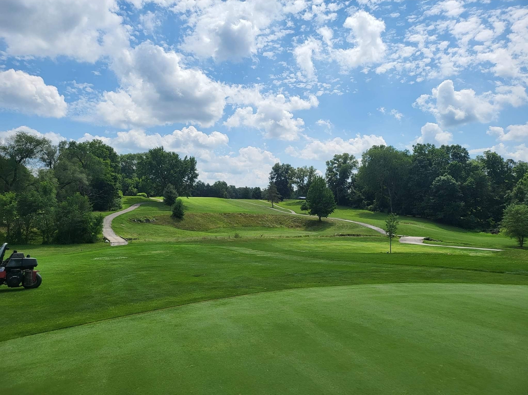 Nice course. Back nine gas more hills. Friendly staff. They are always trying to improve the course. My only frustration is they never put score cards on the cart.