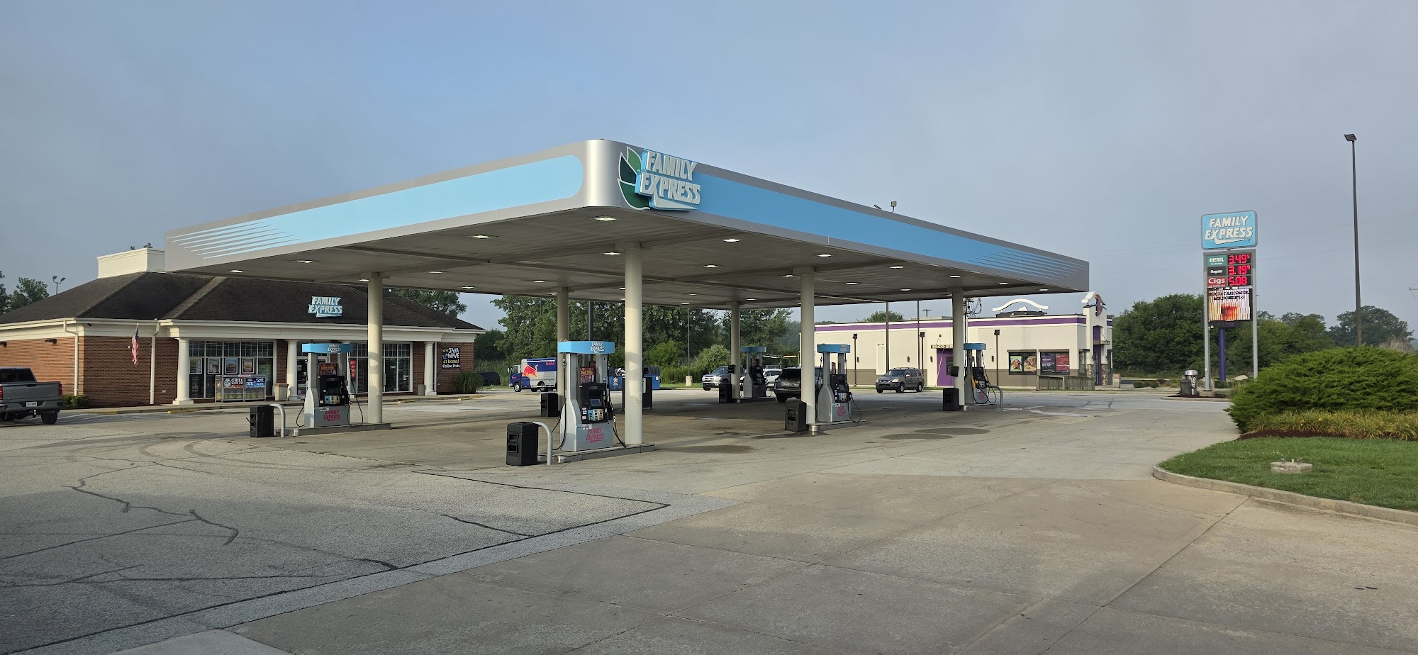 Family Express is a family-owned convenience store chain serving Indiana, known for tasty food and friendly service. The gas station is generally clean, with the bathrooms being the cleanest encountered during a road trip. It offers a large selection of drinks, donuts, and fresh food including fruits and sandwiches. Staff members are friendly, often asking how customers are doing and offering assistance. The location provides a safe and clean space to stop, with good parking for trucks, although some puddles of water are present. The station sells both truck diesel and car gasoline, though some reviews note that certain pumps, like pump 5, may need attention. While the food may not appeal to everyone, some find it suitable for survival or quick stops. Overall, it is a convenient, clean, and hospitable place to refuel and rest.