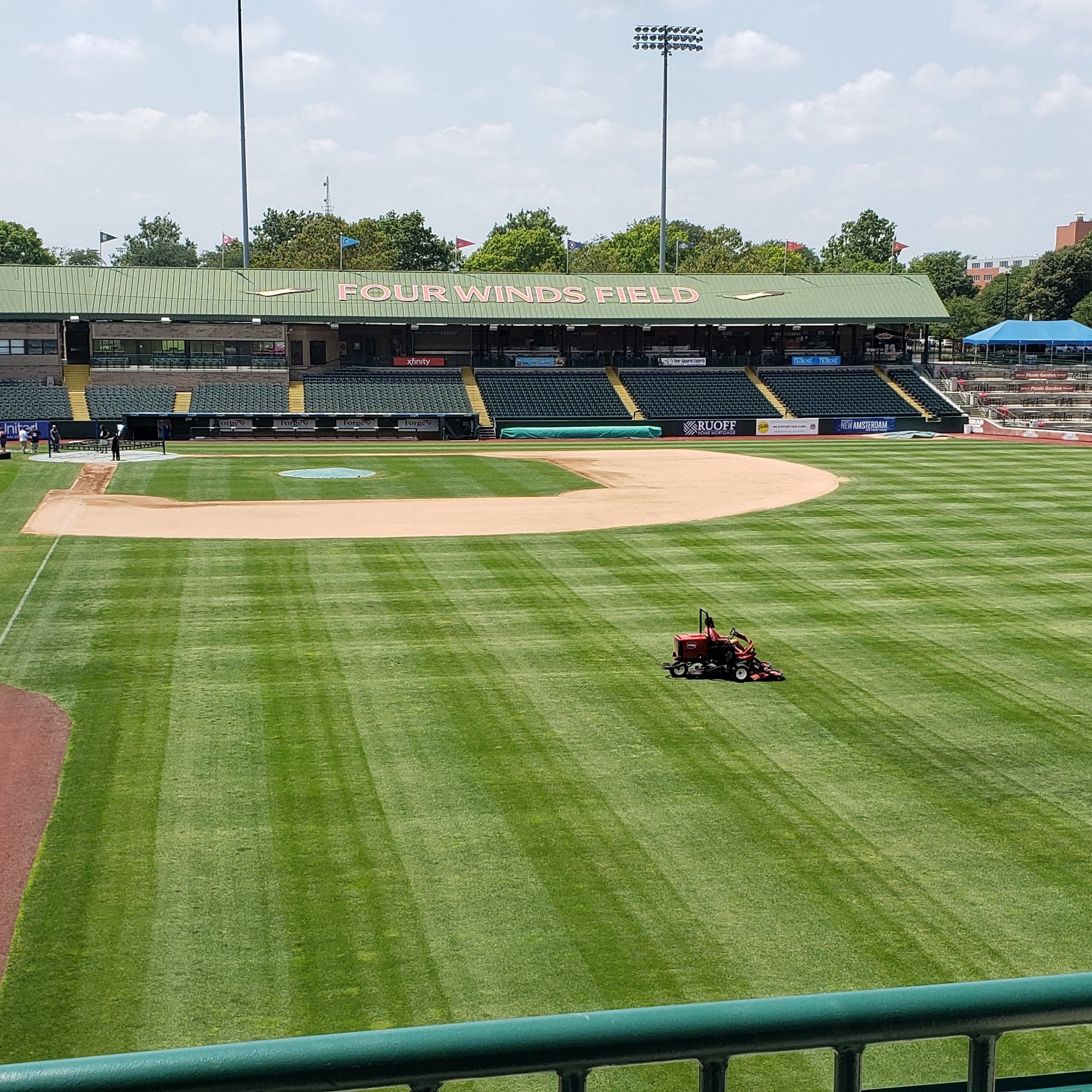Nice view of stadium also out of the rain but also has a nice outside viewing area