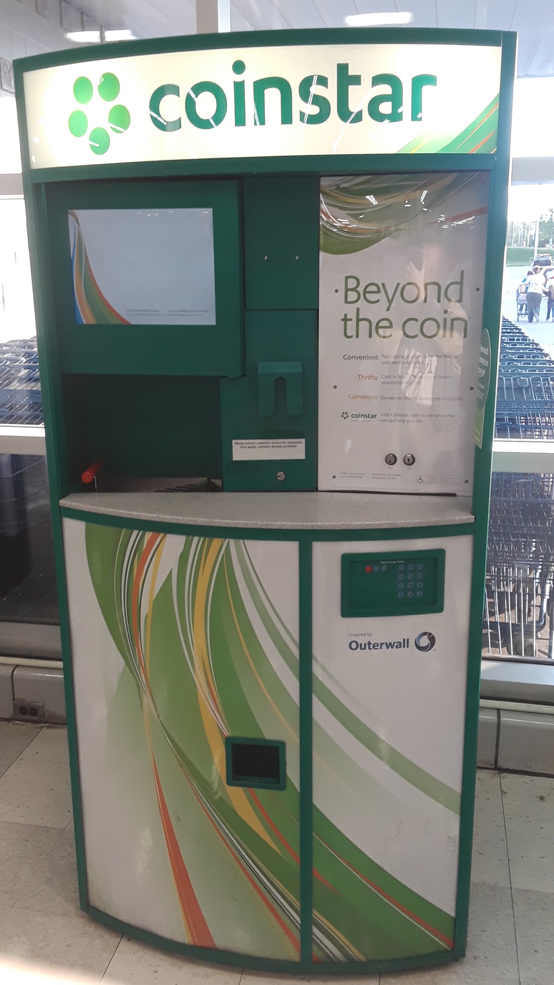 Easy to use machine. I had a big damn full of Queens and it only took a matter of minutes to cash that out. That is way better than trying to put the coins in those paper rolls like in the old days. Very happy there is a machine that can do it for you.