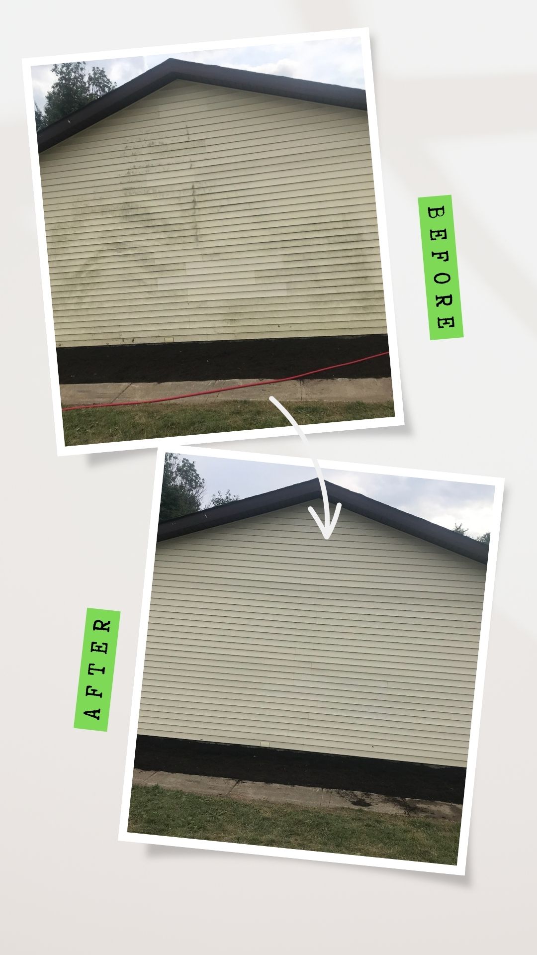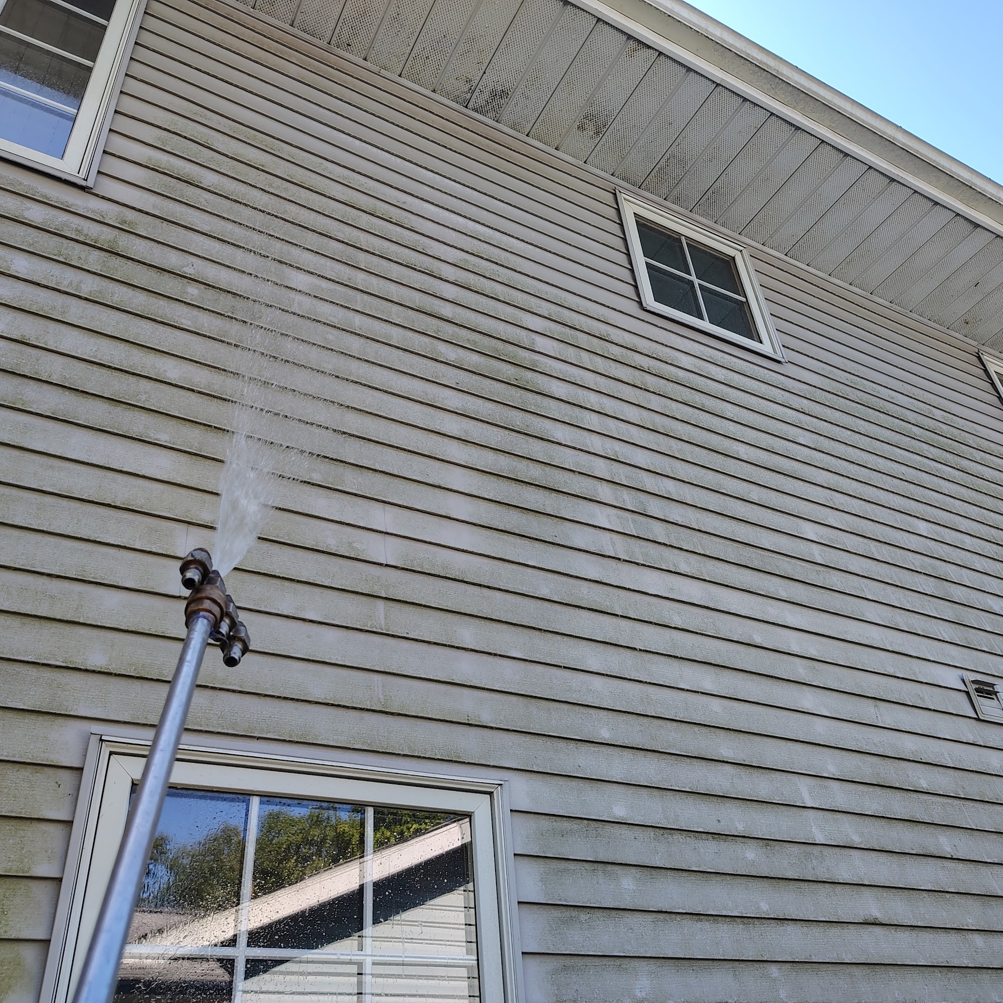 Another satisfied customer Tree Frog soft washed my siding gutters, trim. Power washed 2 patios it looks like a brand new home. I recommend this company 100%
