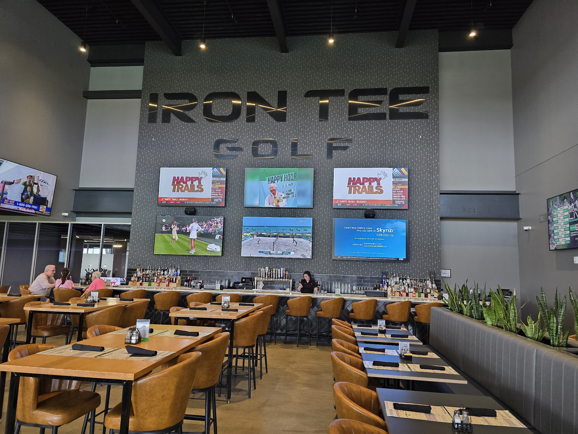 Iron Tee Golf offers an unparalleled golfing experience with its climate-controlled hitting bays, powered by advanced TrackMan ball tracking technology. With 58 bays available, golfers can enjoy the sport year-round, either solo or with friends. The venue also features chef-inspired food options, multiple bar and lounge areas, and a state-of-the-art arcade with a high-tech mini golf course called Lucky Putt. From happy hours to weekend brunches, birthday parties to team meetings, corporate events to group outings, Iron Tee Golf is a one-stop destination for golf, dining, and entertainment. The food and drink prices are very affordable, making it a fun place for all ages. While the service may vary, with some staff being more helpful than others, the overall experience is highly enjoyable, especially when Maddie is serving the party.