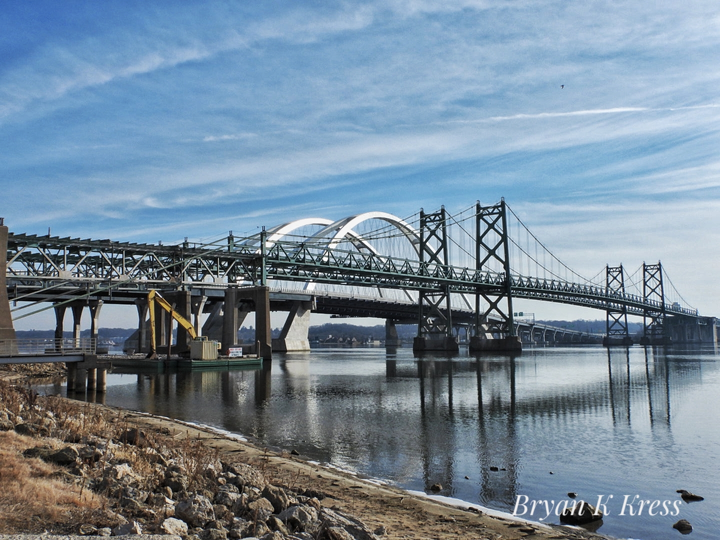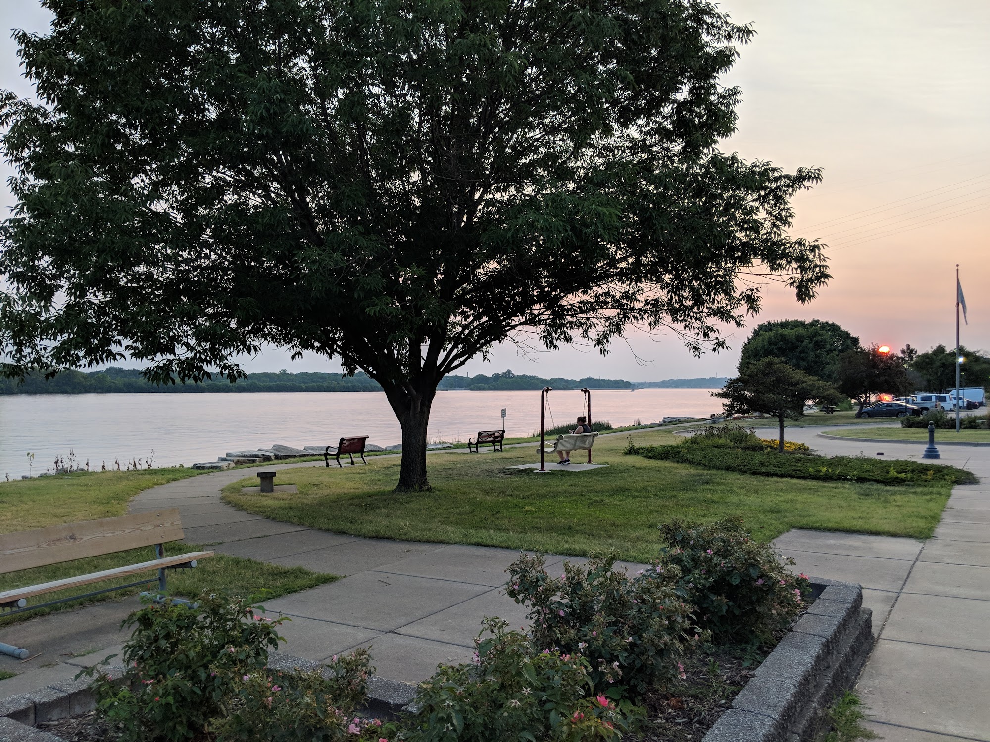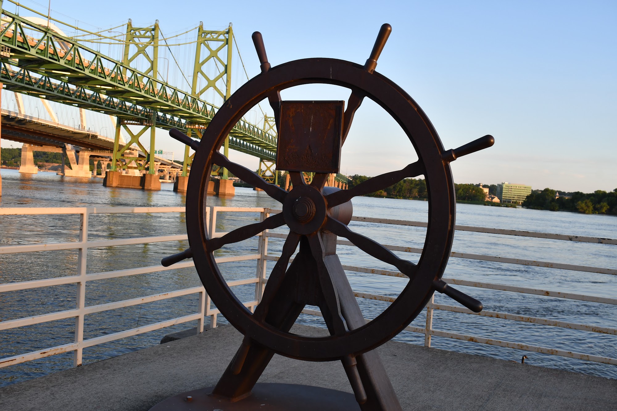 Leach Park was a nice quiet spot to walk, bike, or take in the views of the Mississippi. There were plenty of benches and also a few porch swings. The paved path that continued underneath the bridge was great for walking or biking. The bridge was easily visible but far enough away that the traffic noises were not very loud.