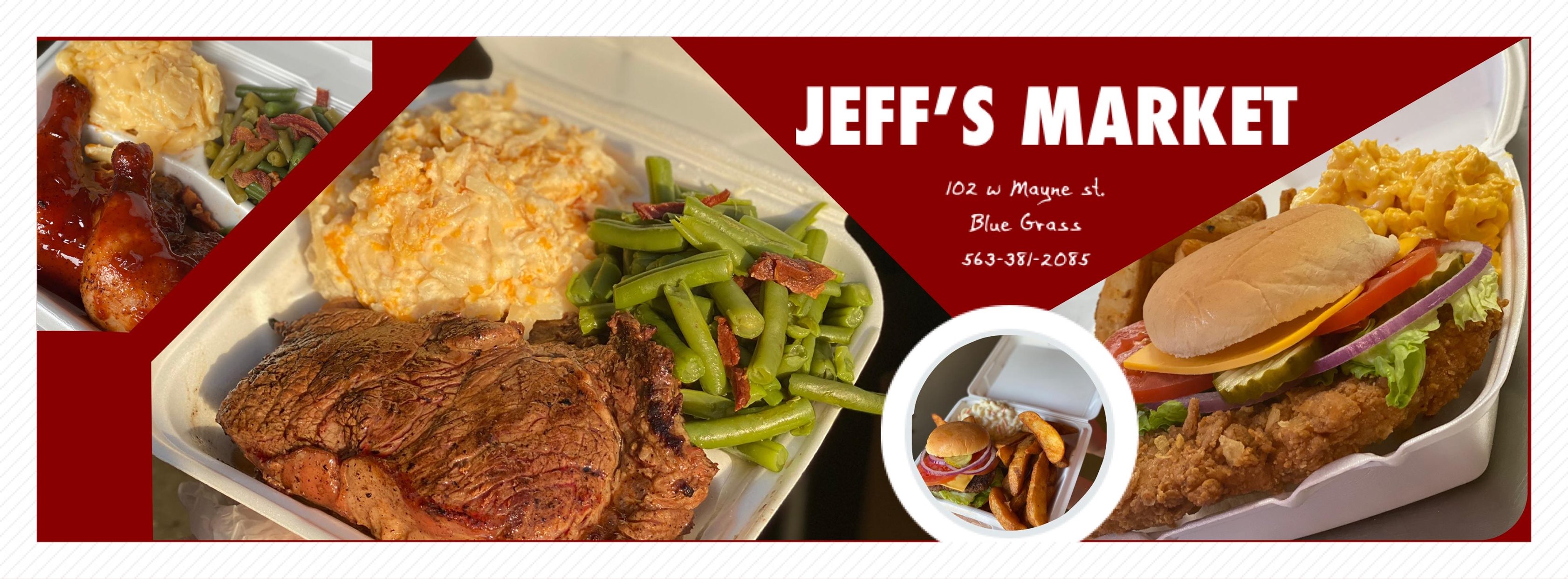Jeff's Market is a small town, family type store with very friendly and super helpful people. It offers great hot food and weekday lunch offerings that are huge, with plenty of food for $6 or $7. The deli has fresh meat and great steaks, with delicious items like haddock, mac-n-cheese, and broccoli salad. The service is great and treats you like a person. The deli does not stay open after 2, but it is a great place to pick up lunch.