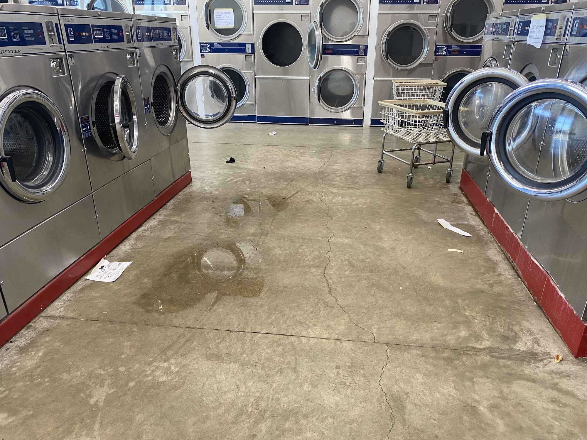 Place needs to be cleaned, numerous out of order signs on machines and the number 5 washer didn’t spin dry my article being washed.