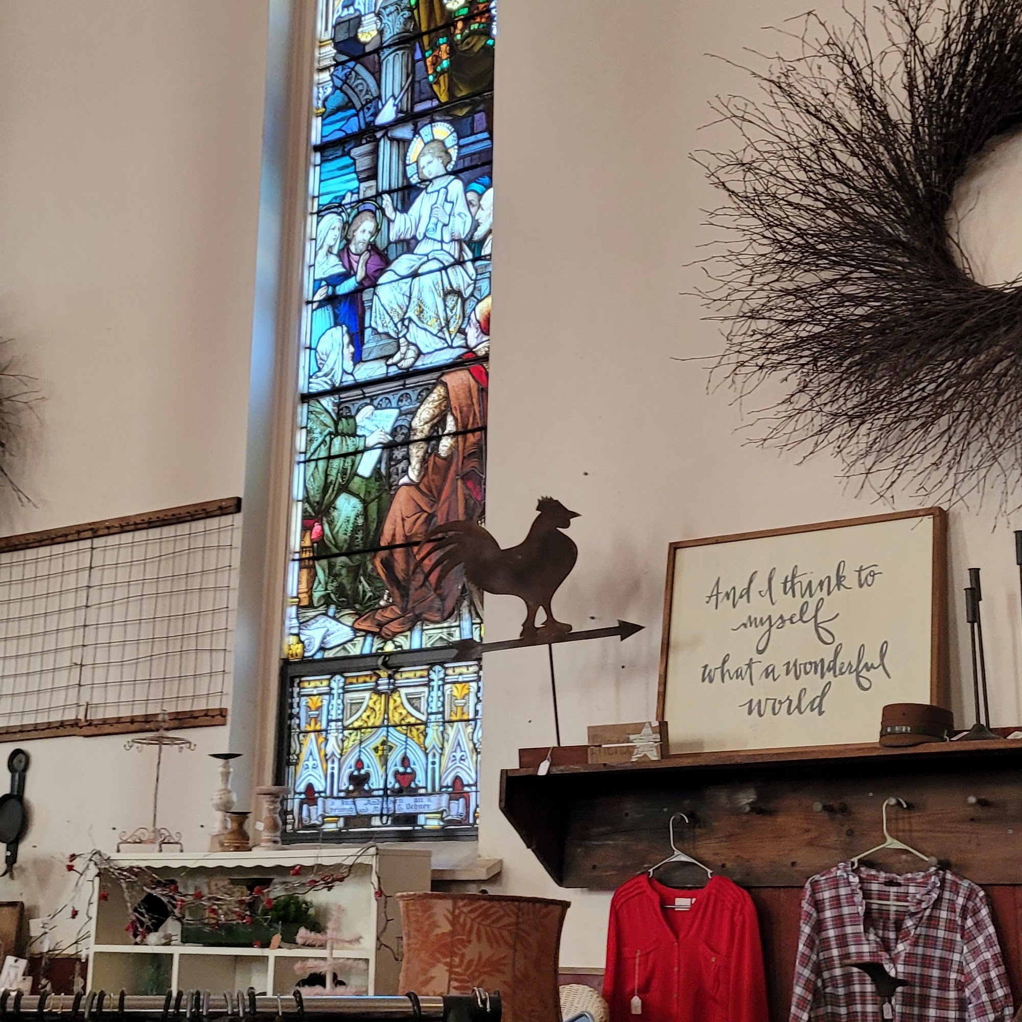 Annie's Treasures is a beautiful old church converted to an antique shop. The building is adorable and clean, with stunning original stained glass windows. It is filled with tons of interesting stuff, including antiques, primitives, and vintage and Christmas things. There are many hidden treasures and amazing things everywhere, requiring multiple visits to see everything. The owners are friendly and helpful. It is definitely worth a stop, located in a little town with good food and personality.