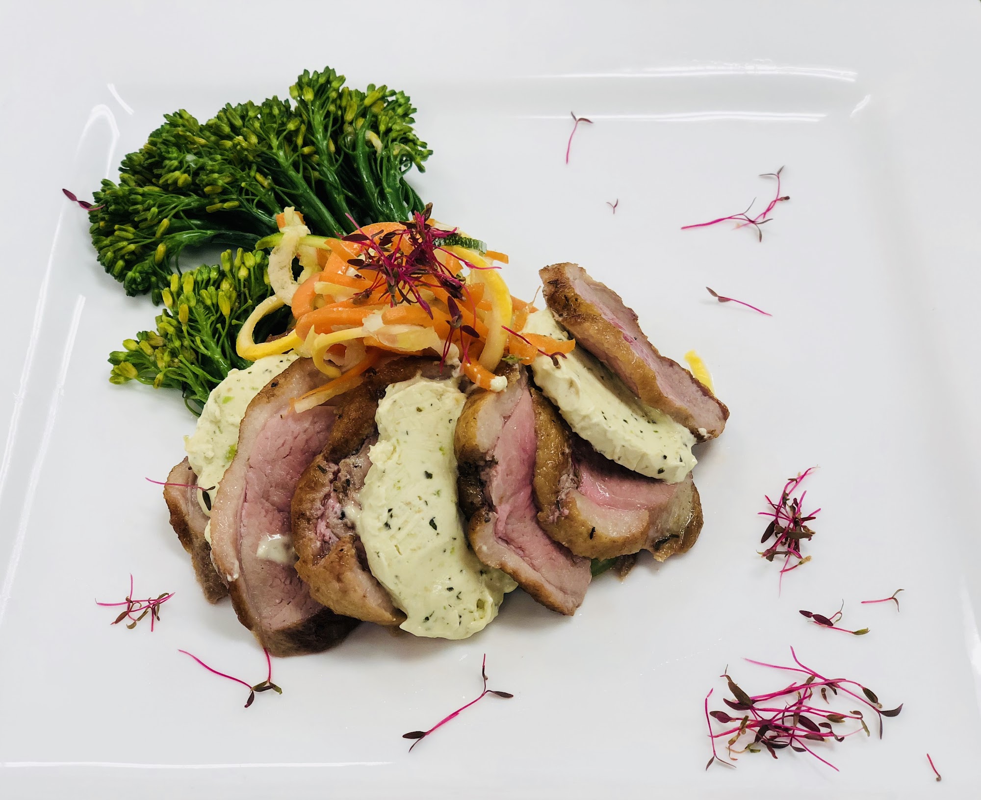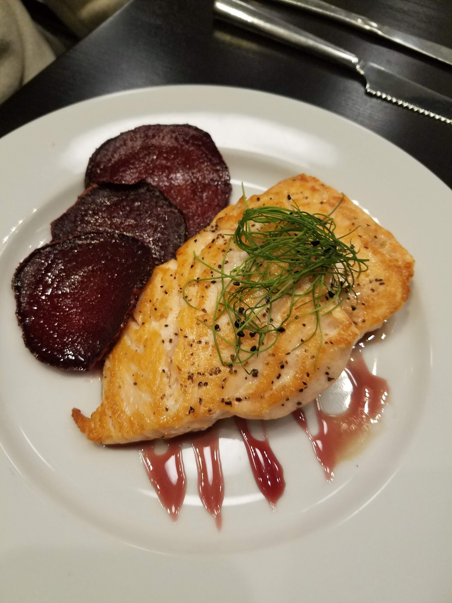 LOVED it! Everything tasted wonderful. The staff was very friendly and informative. Loved that the chef delivered our entrees. He was very personable. We had the salmon and maple pecan chicken. Loved both and will definitely be back! Great place for date night and very relaxed atmosphere in business casual.