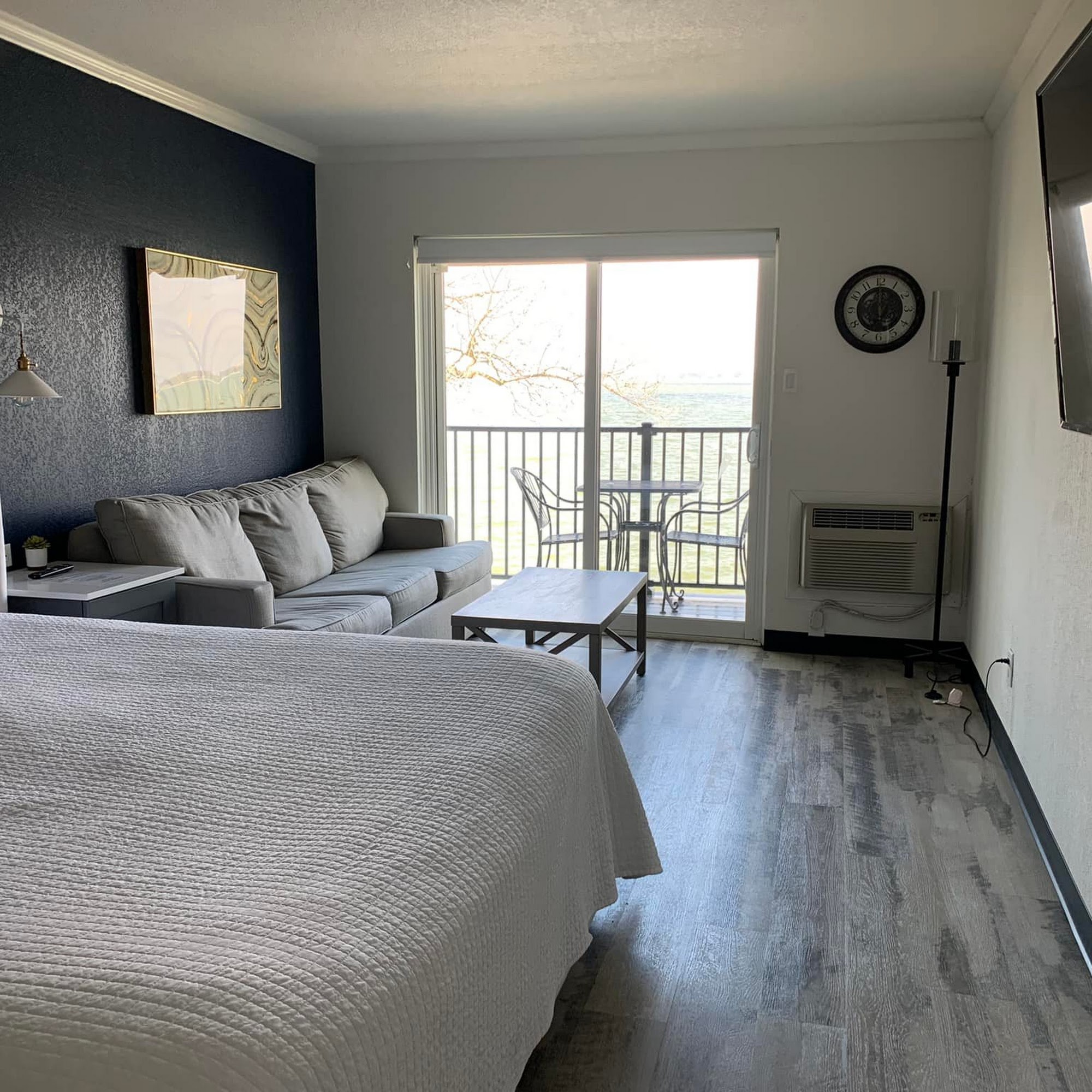 The rooms are a little dated, but the rooms are cheap in the winter. The only downside is the smell. I don't know where it's coming from, but there is an extreme perfume like smell. Nice view of the lake, and easy parking.