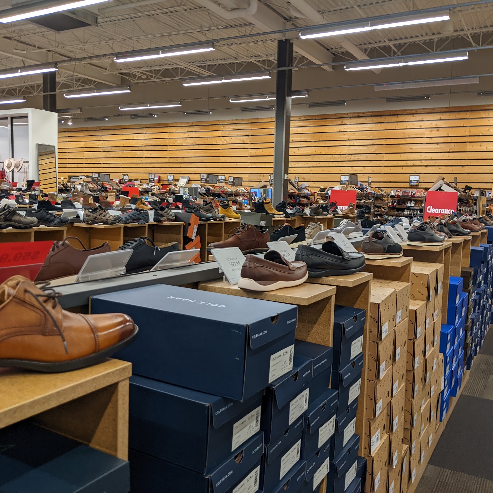 It would help if the shoes were displayed by manufacturer. Definitely not wheelchair friendly.