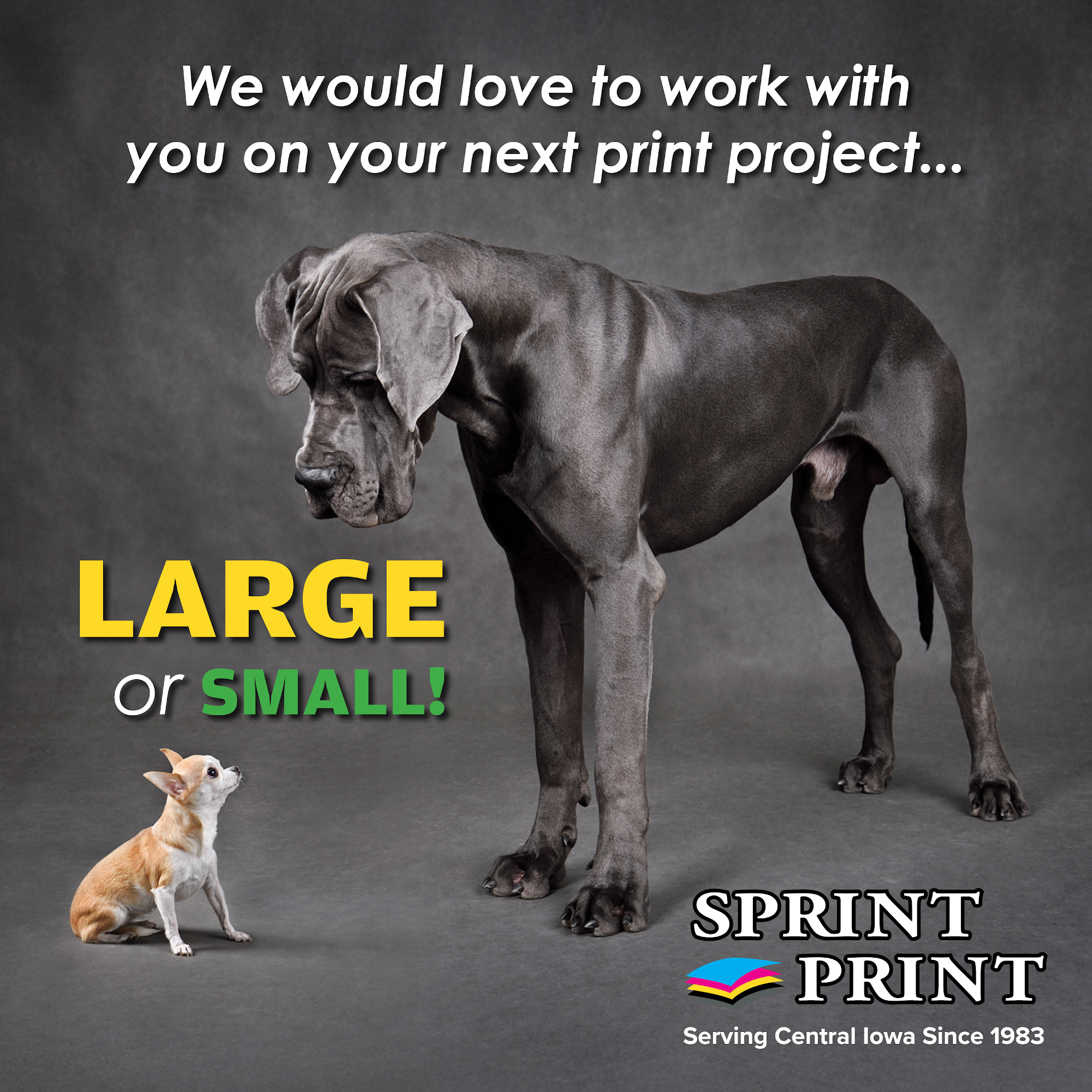 Sprint Print Inc., locally owned and operated since 1983, is a full-service print and copy shop located in the historic Highland Park neighborhood of Des Moines, IA. We offer personalized service through local representatives, delivering a level of quality and attention that online print providers cannot match. Our expertise includes digital and offset printing, bindery and finishing, direct mail marketing, and graphic design. From business cards and banners to posters and postcards, we are committed to producing high-quality results tailored to your needs.