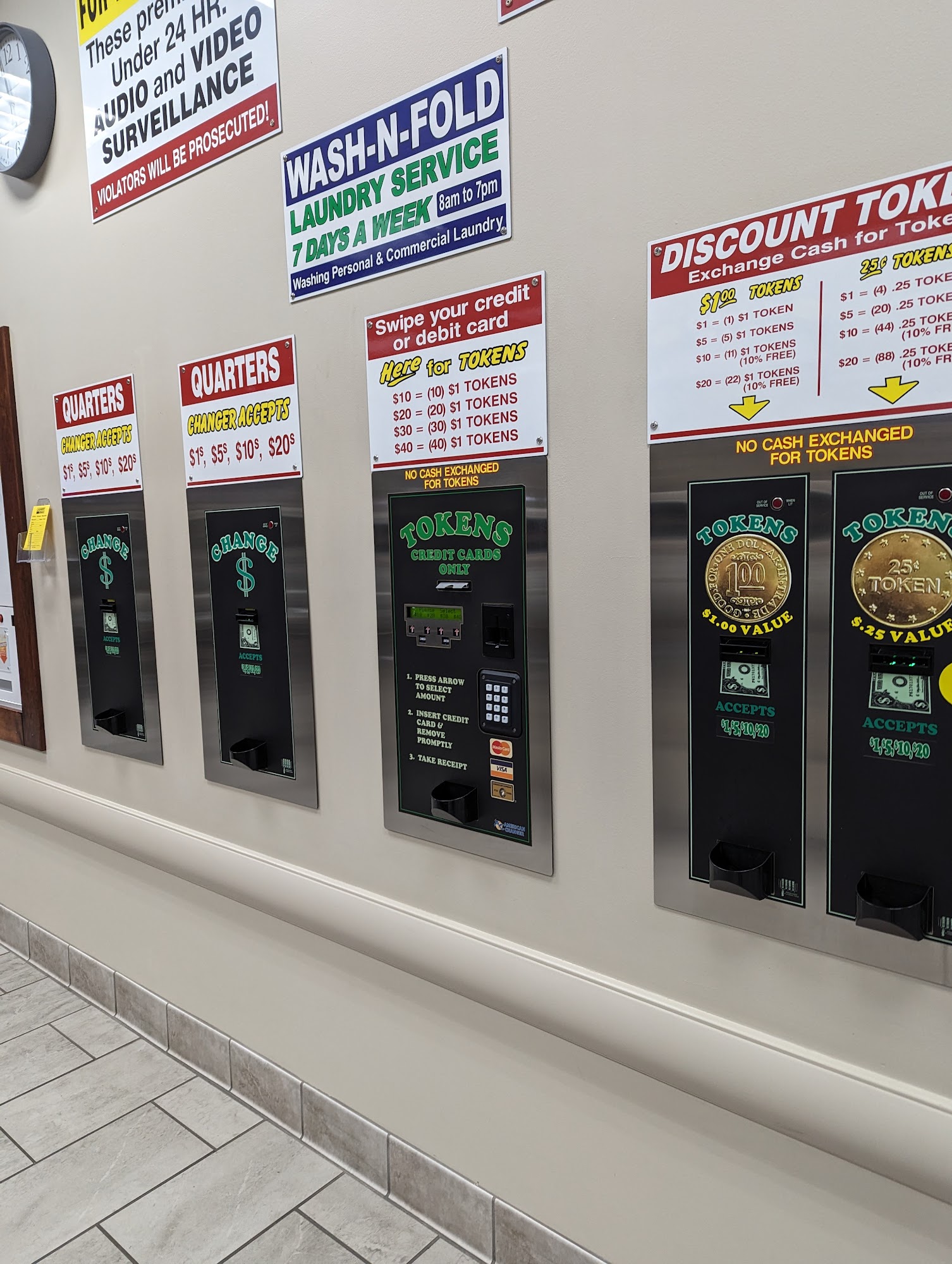 Takes credit cards to buy tokens. The place was clean and quiet. There are tables to sit at
