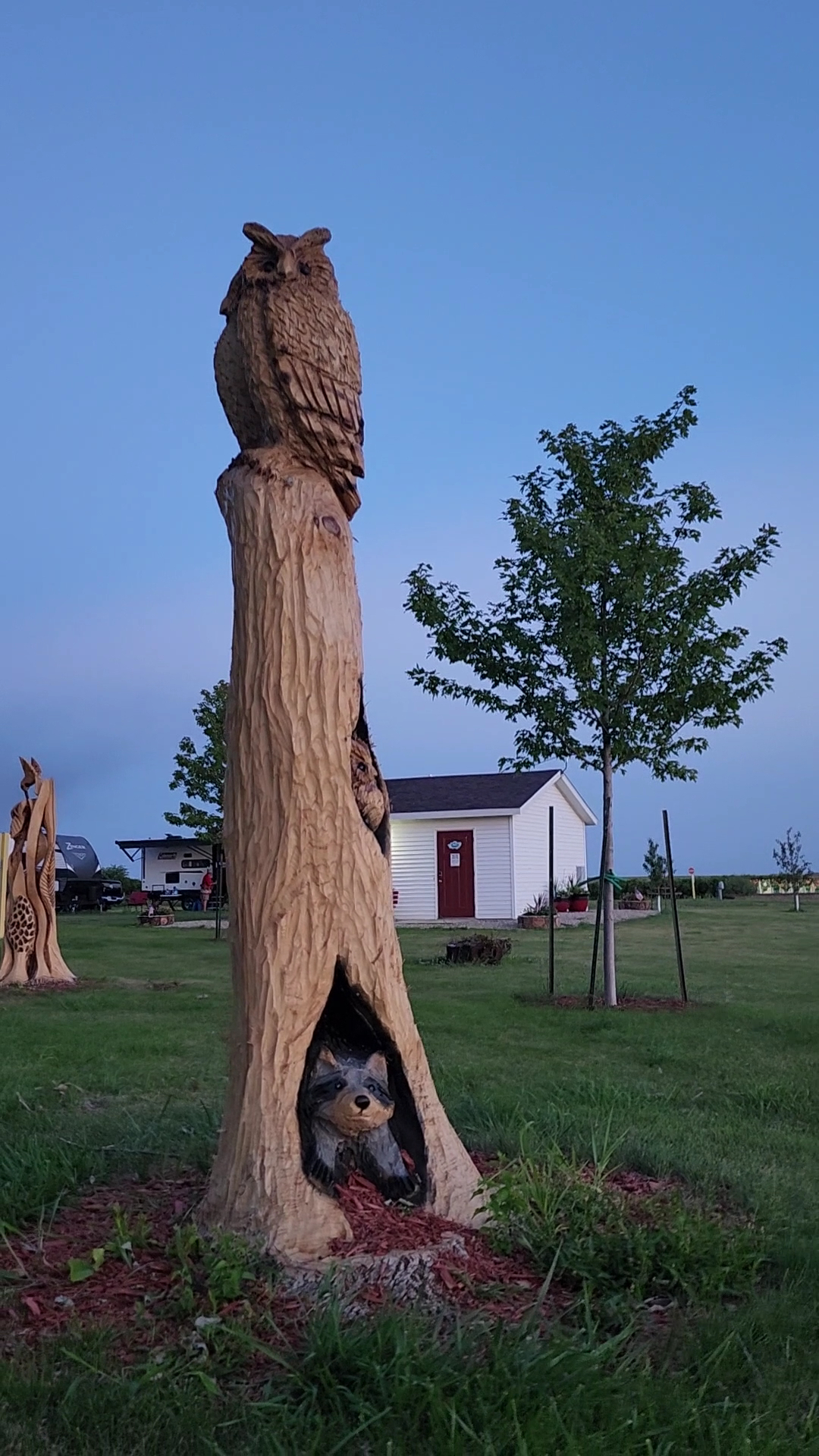 I really like this park. Everything screams convenience here. Gas station on site, farm eggs and free WiFi speaks volumes. My one wish is if they woukd upgrade to be able to stay open year round. I would never move if they did that 😃. Also, I am in love with the statues they made out of the tree stumps sticking out of...
