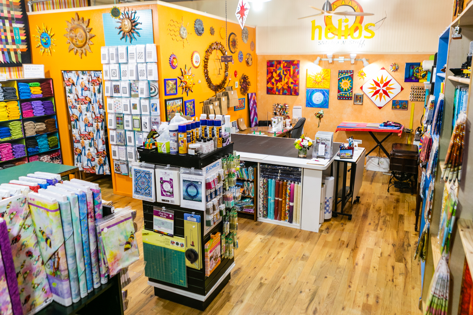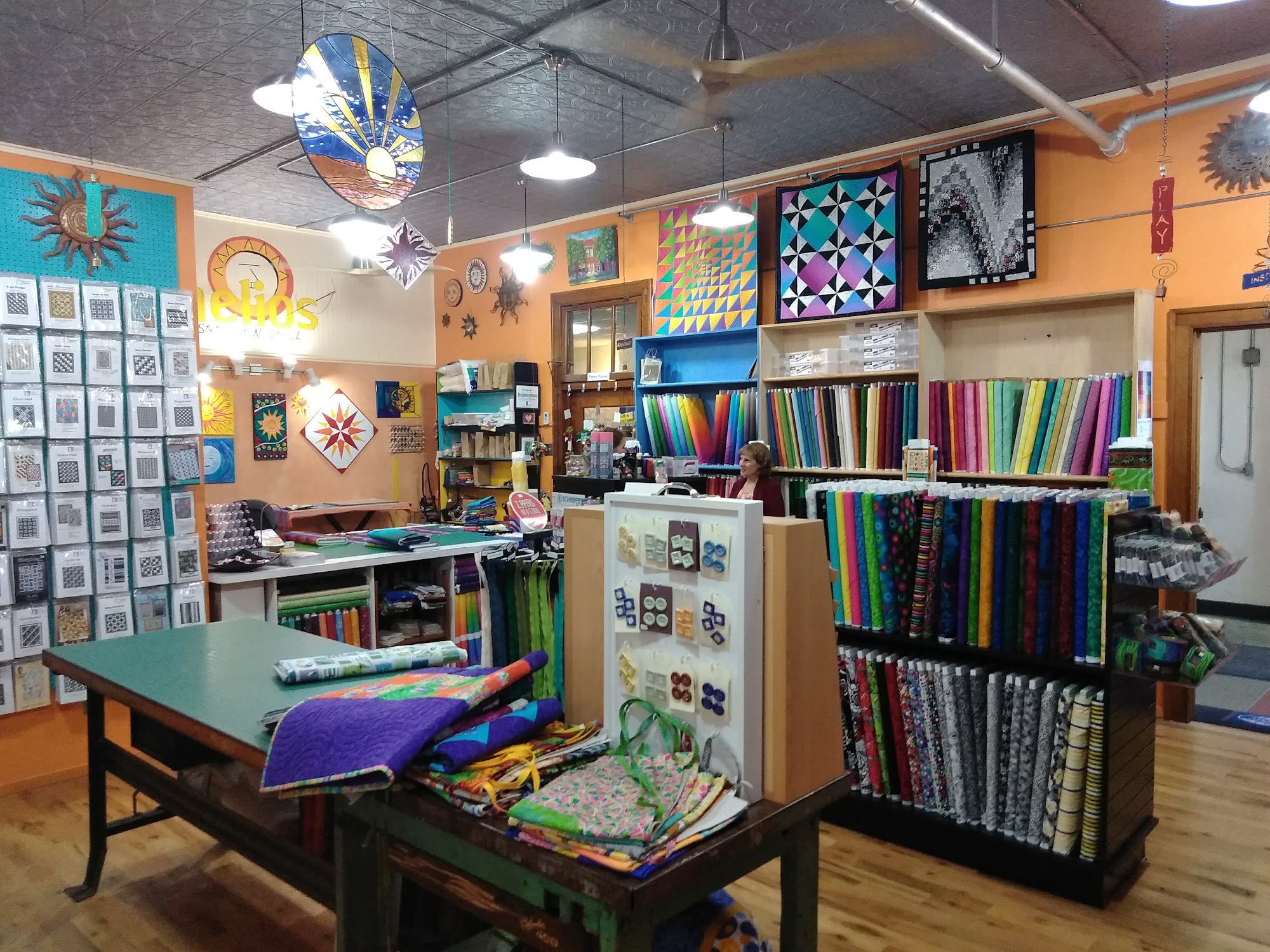 Helios Stitches N Stuff is a charming fabric shop located in an old schoolhouse in a small town. The store offers a good variety of fabrics, including a large selection of cottons, threads, notions, and pre-made kits. Customers often highlight the friendly and knowledgeable staff, who are eager to assist with finding the perfect fabric or matching colors for projects. Many visitors appreciate the helpful service, with some mentioning staff members as especially kind and skilled, making each visit a pleasant experience. The shop features a wall of blenders and clearance fabrics that are reasonably priced, along with a limited selection of wider backing fabrics and kits. Reviews indicate that the shop is especially valuable for locals who do not want to travel far for a variety of sewing supplies. Out-of-state visitors also enjoy shopping here, often praising the quality of fabrics and fast online delivery. Overall, Helios Stitches N Stuff is known for its cozy atmosphere, great selection of cotton fabrics, and friendly staff, making it a favorite spot for quilters and sewers alike. The shop is a must-visit for those looking for good service, helpful advice, and a wide range of sewing supplies.