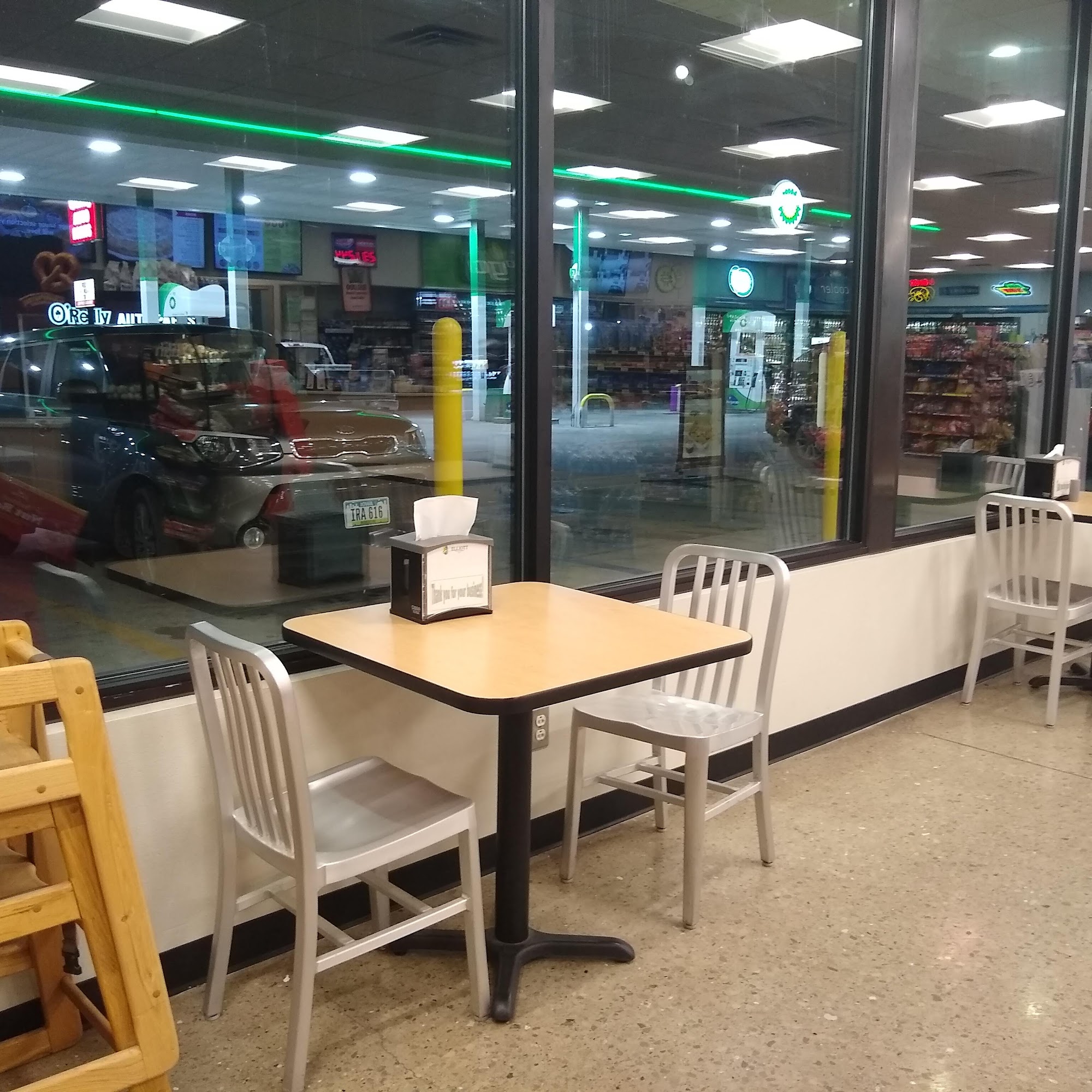 Nice place to get food drinks and gas love the prices for gas Pop food cards at pump and ATM restroom men and women handicap