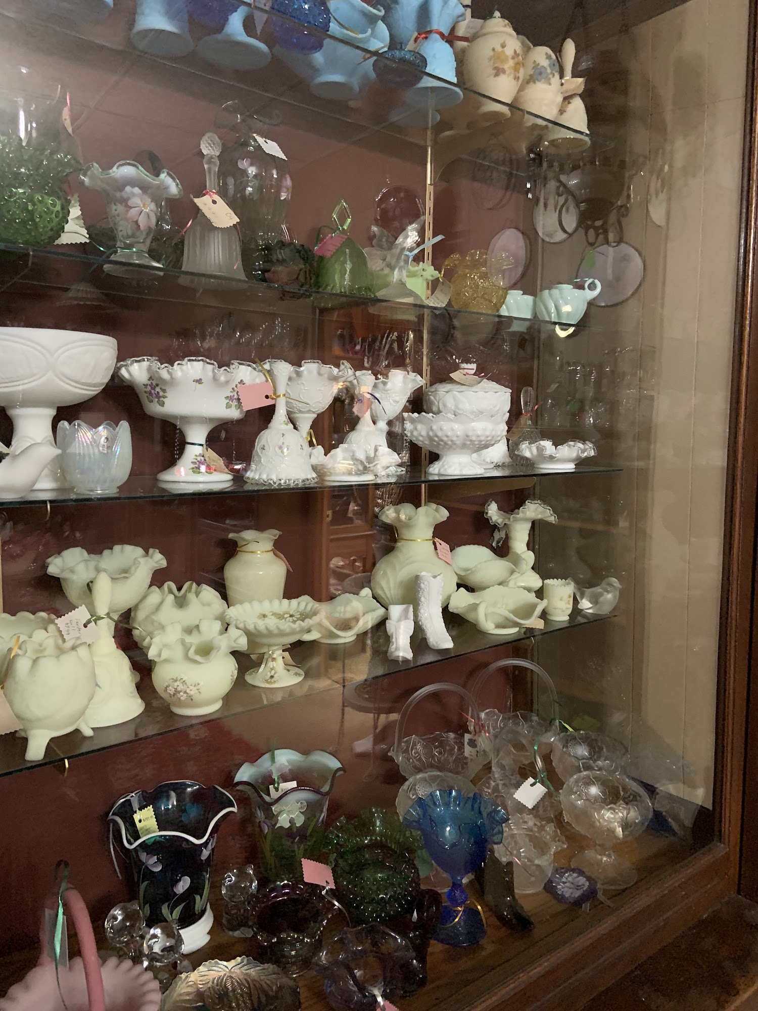 Antique furniture, Fenton, lots of vintage items, beautiful jewelry, stoneware, slag glass lamps, chandeliers, marble top parlor tables. Almost anything you could want! Call or text me if you want to set up a time when I’m not open. 641-430-4492. Thanks!