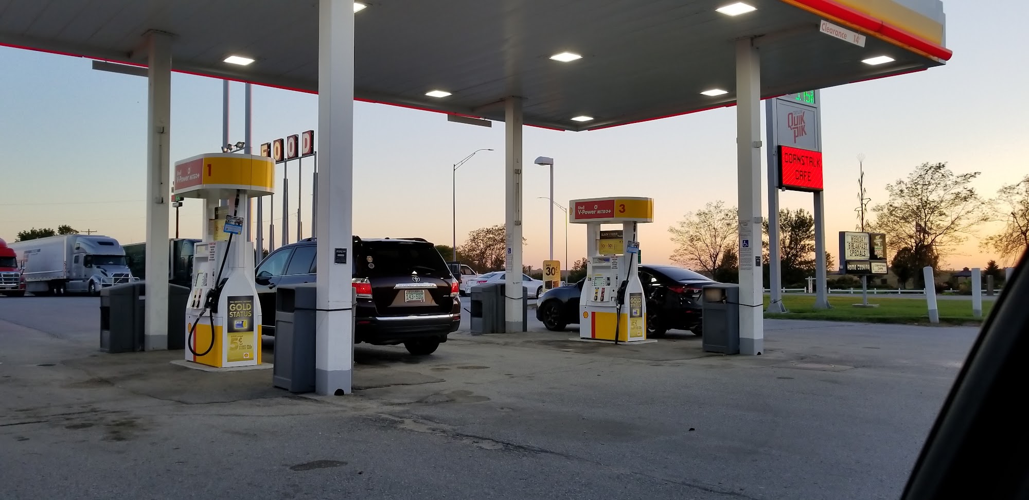 Forget the Love's across the highway. This place is great: -Full service pumps -Clean outdoors -Great coffee! (unexpected!) -Clean restrooms -Very nice staff