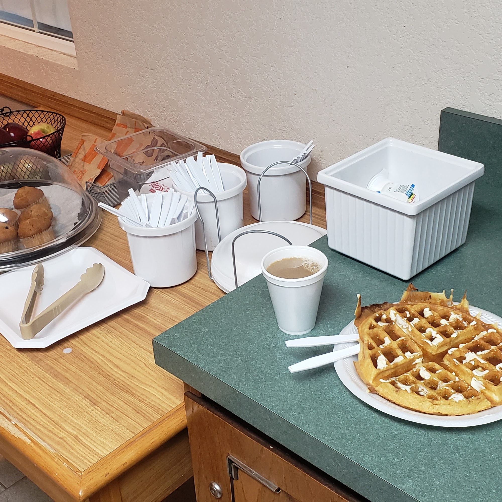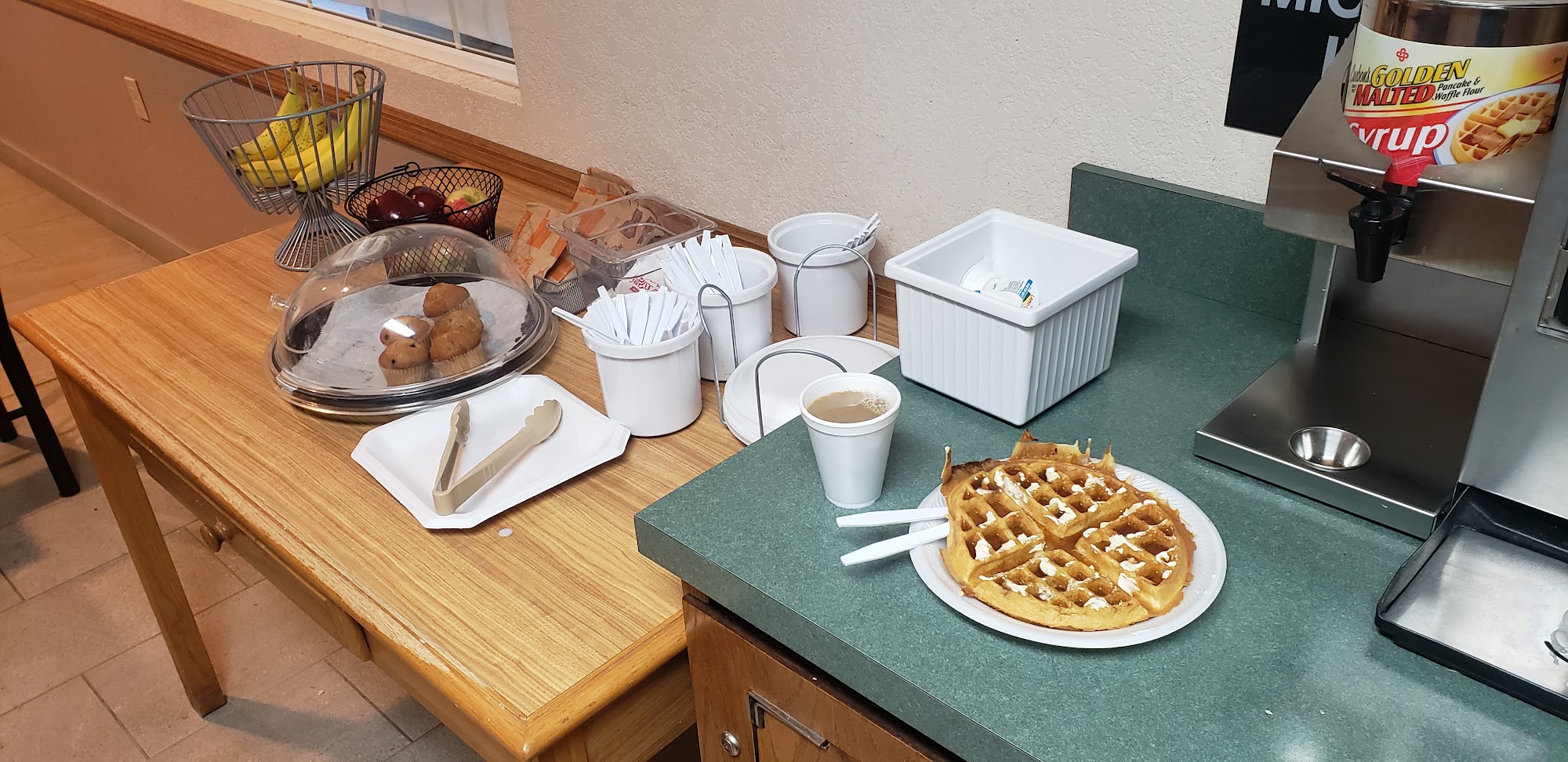 Breakfast could have a toaster and more fresh fruit, but it was ok. Ideal location for Rise Fest!