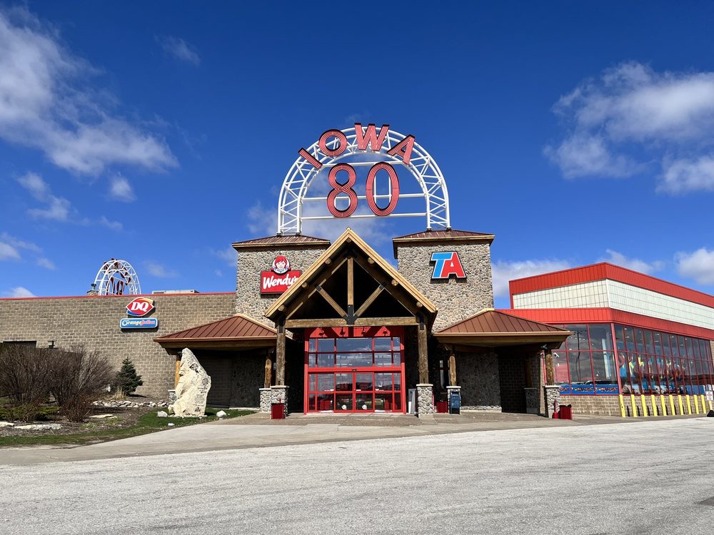 Iowa 80 - The World's Largest Truckstop is a huge place with everything needed for comfort on the road. It offers lots of space to park, with hundreds of spaces for trucks, trailers, RVs, and automobiles. The facility includes a truck wash, laundry, showers, a barber, and even a dentist. There are many restaurant options, from a great restaurant and excellent buffet to a variety of fast food places inside. It is a great place to browse for trucking accessories and has everything expected and more, especially for truck drivers, making it a must-see in the area. This truck stop truly has it all.