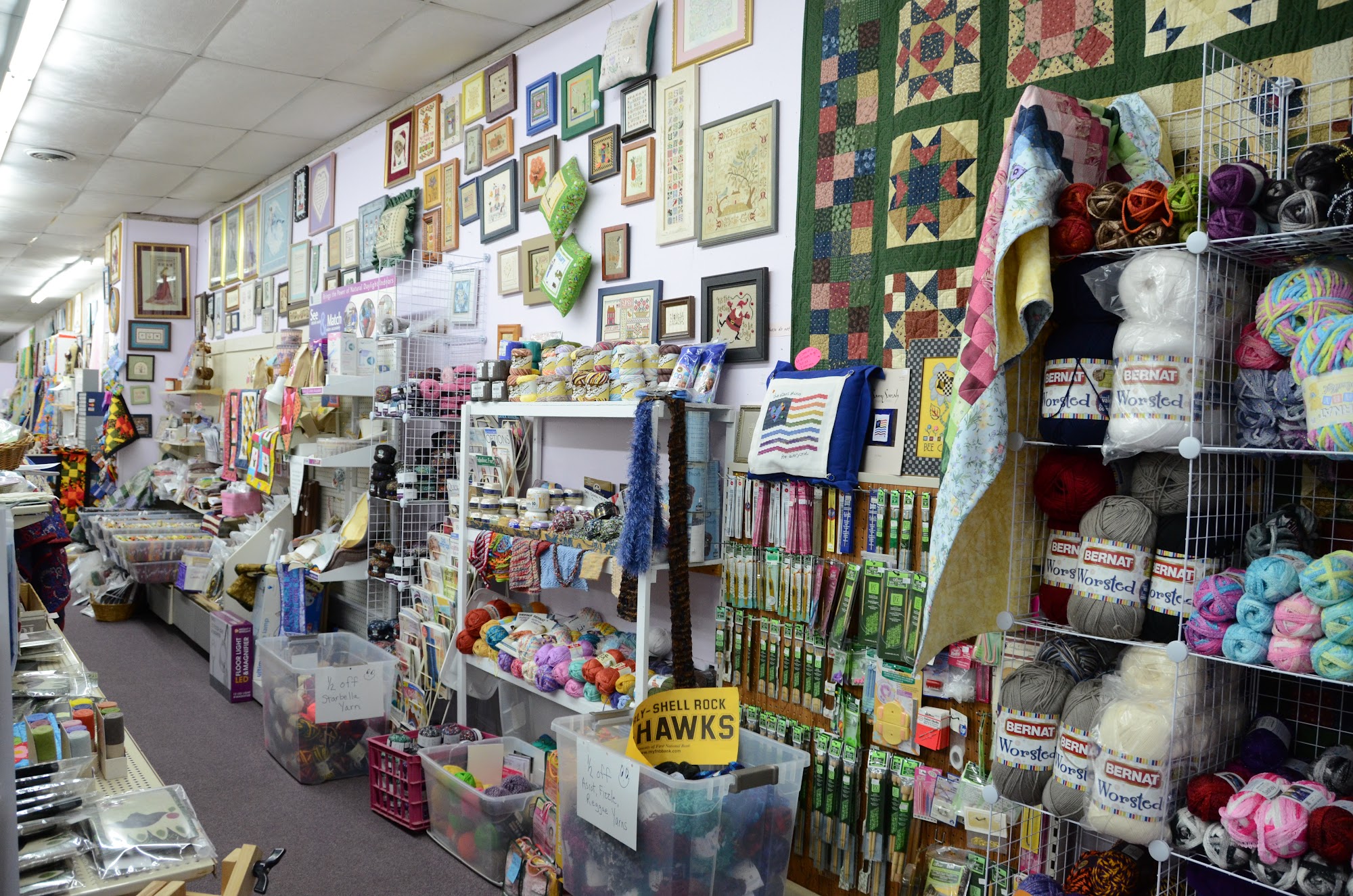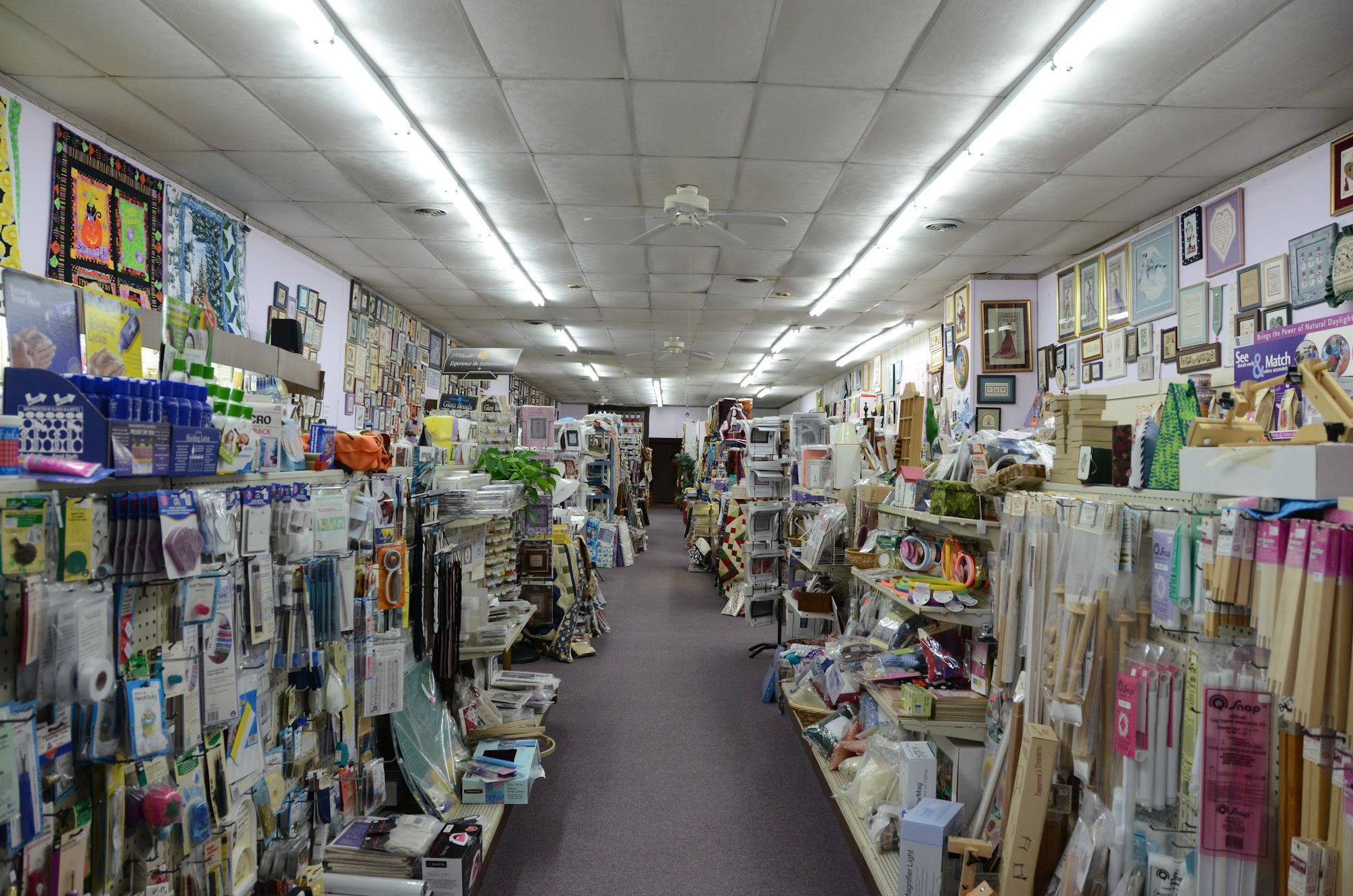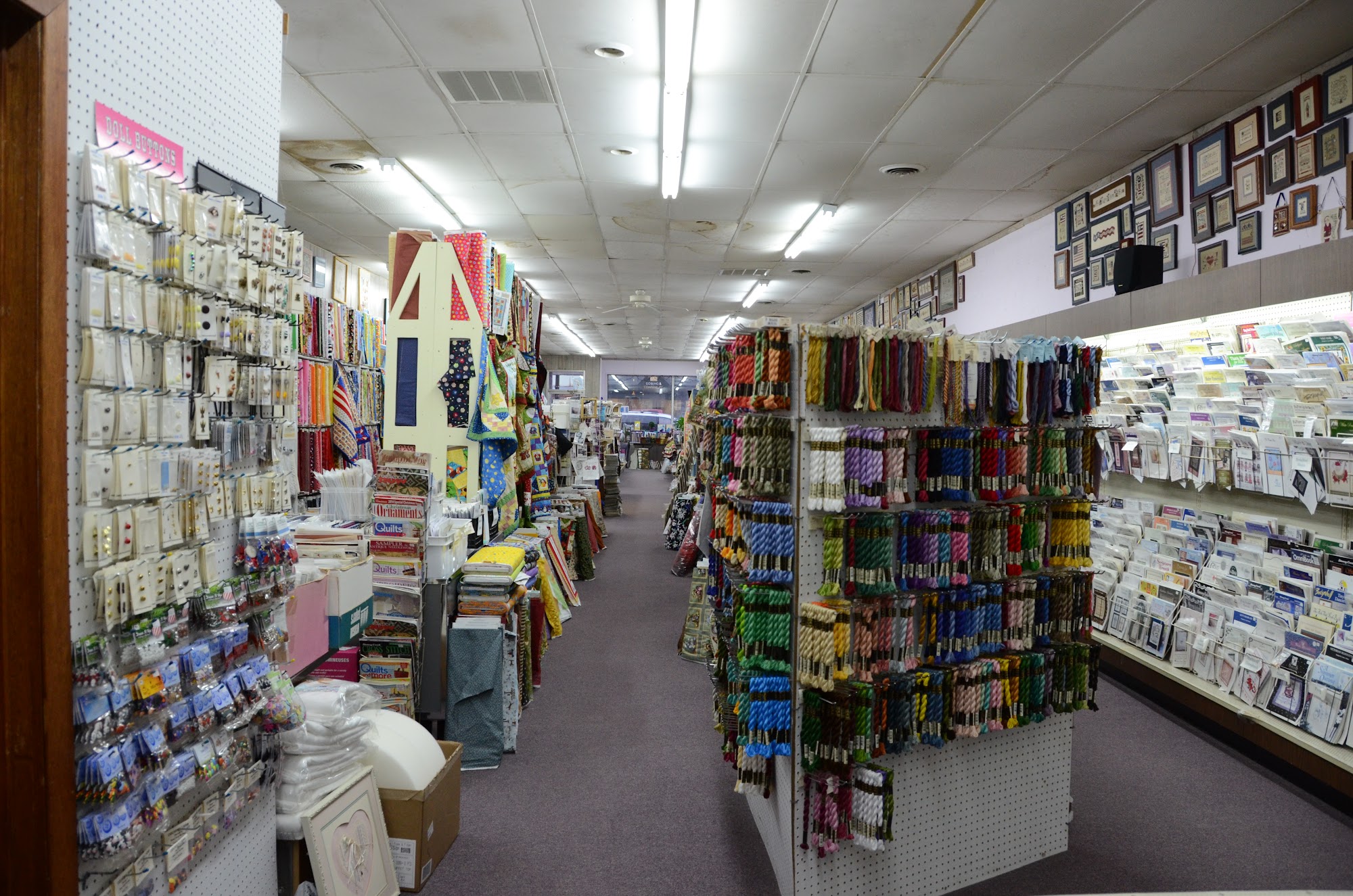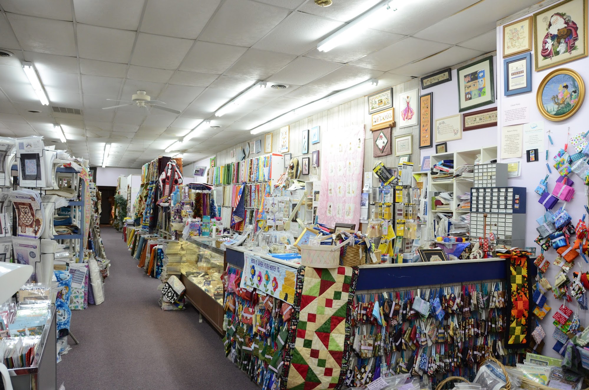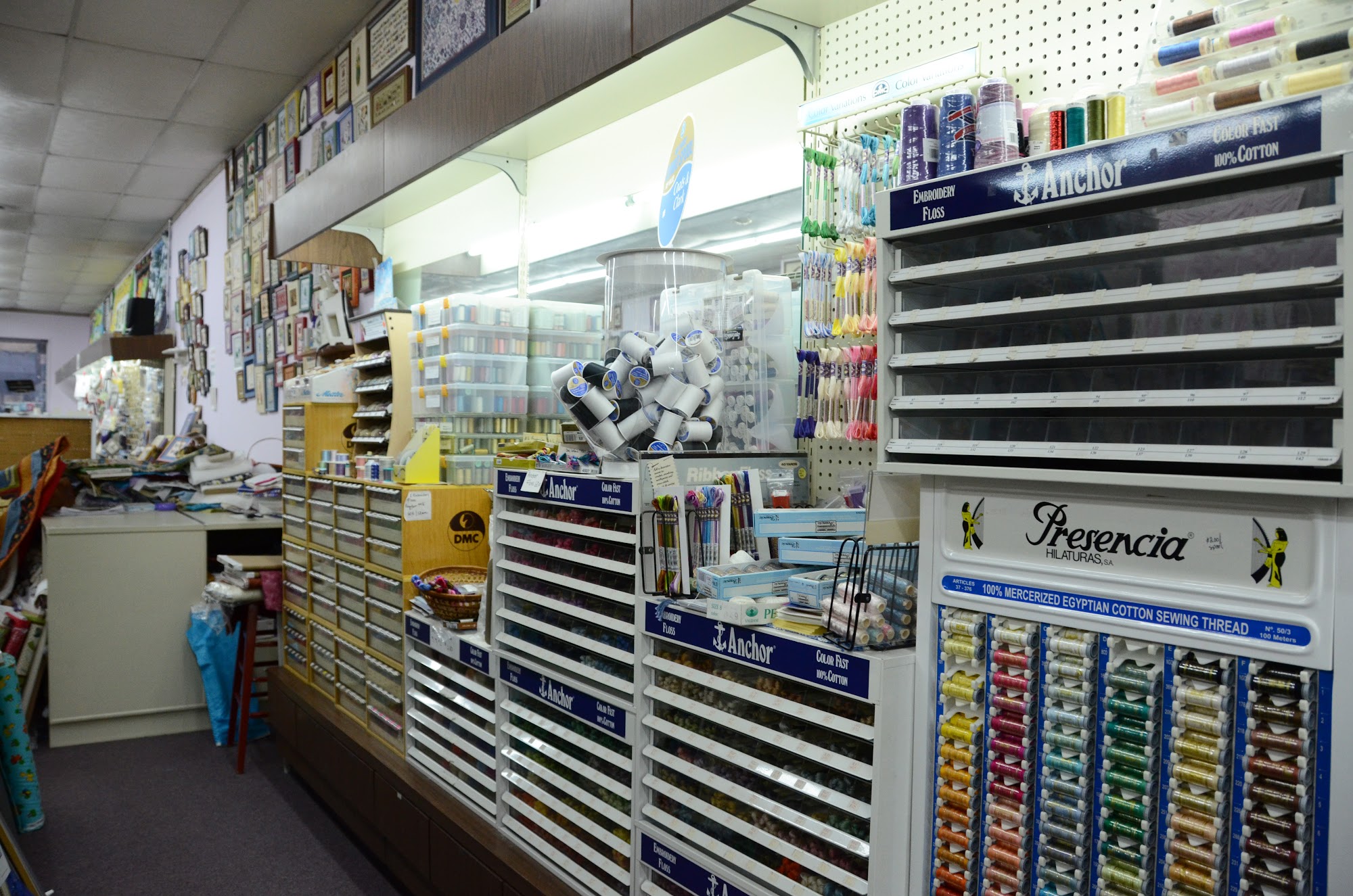Great selection of fabrics and cross stitch patterns, as well as notions. Well lit store. A pleasure to shop here.